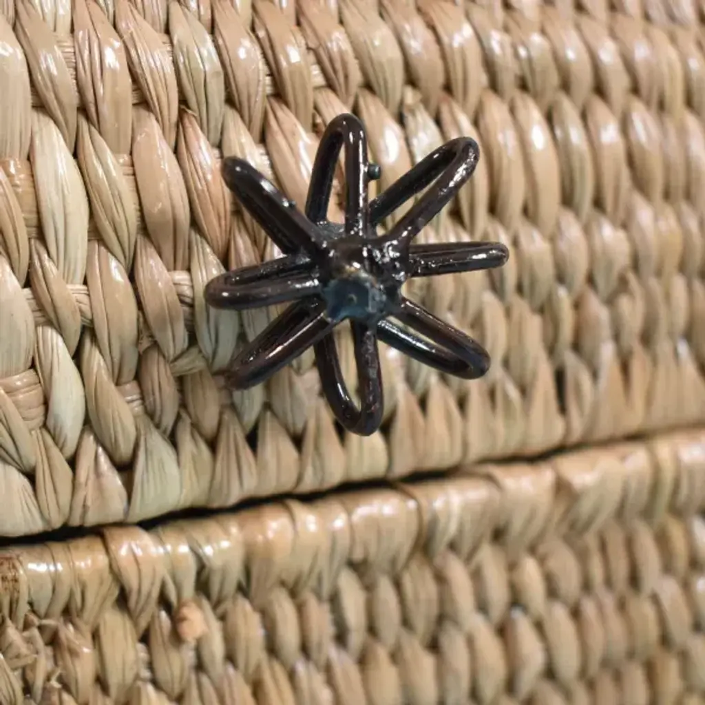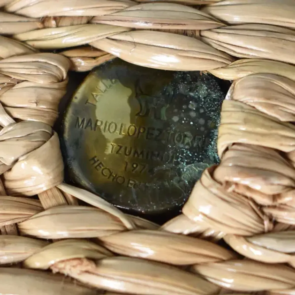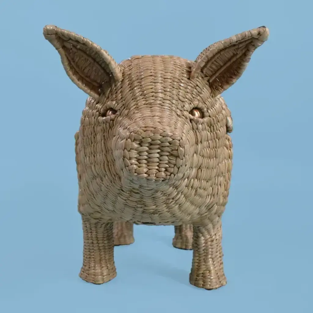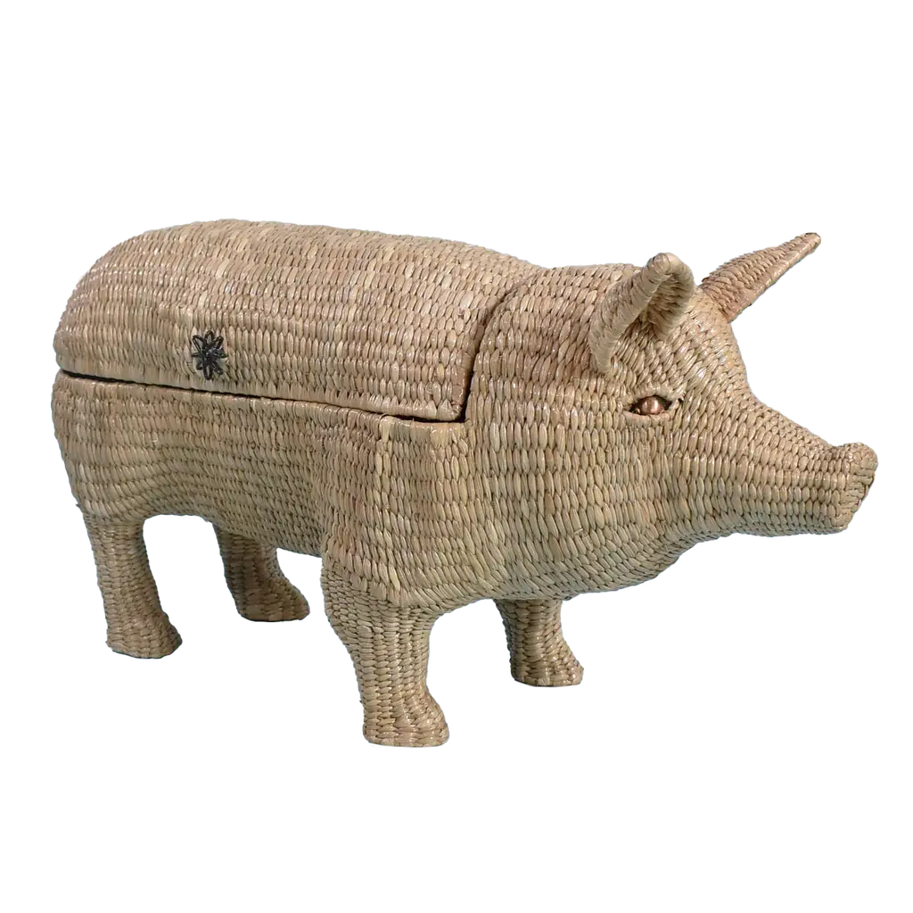 Small Pig Trunk by Mario Lopez Torres. Top opens. There are minor imperfections to the hand-made woven rattan. Signed Mario Lopez Torres Est. 1974. (See Pictures )