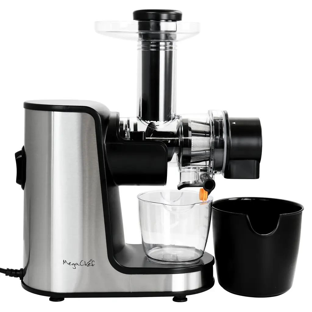 Megachef Masticating Slow Juicer Extractor With Reverse Function, Cold Press Juicer Machine With Quiet Motor - Countertop - Silver - Countertop