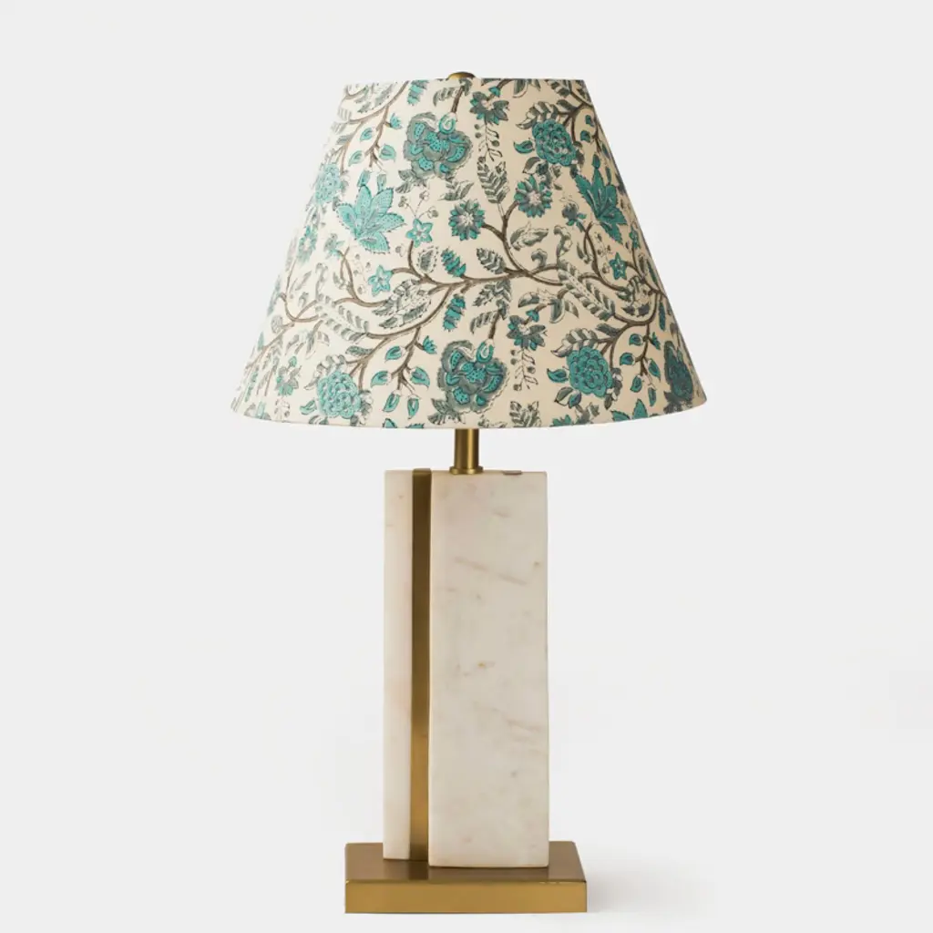 Elevate your home décor with this elegant rectangular lamp base, crafted from natural white marble. Its sleek, minimalist design is enhanced by subtle brass accents, creating a sophisticated statement that complements both modern and classic interiors. Perfect for bedrooms, living rooms, or entryways, this lamp base provides a refined foundation for a variety of lampshades. Durable and stylish, it adds ambient lighting while serving as a timeless decorative accent, blending function and artistry in one handcrafted piece.