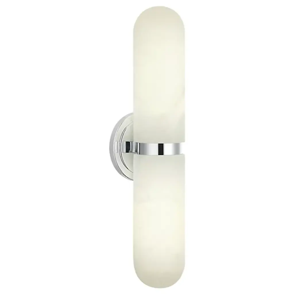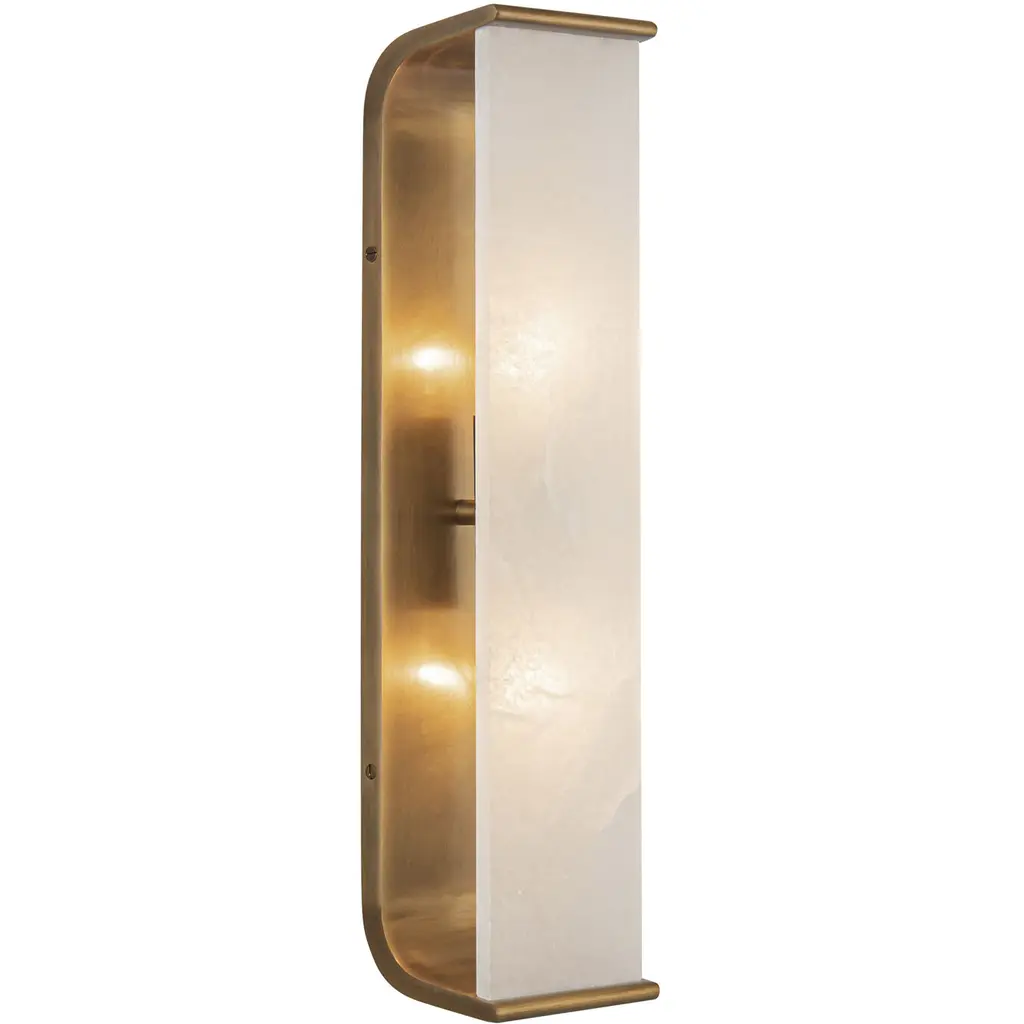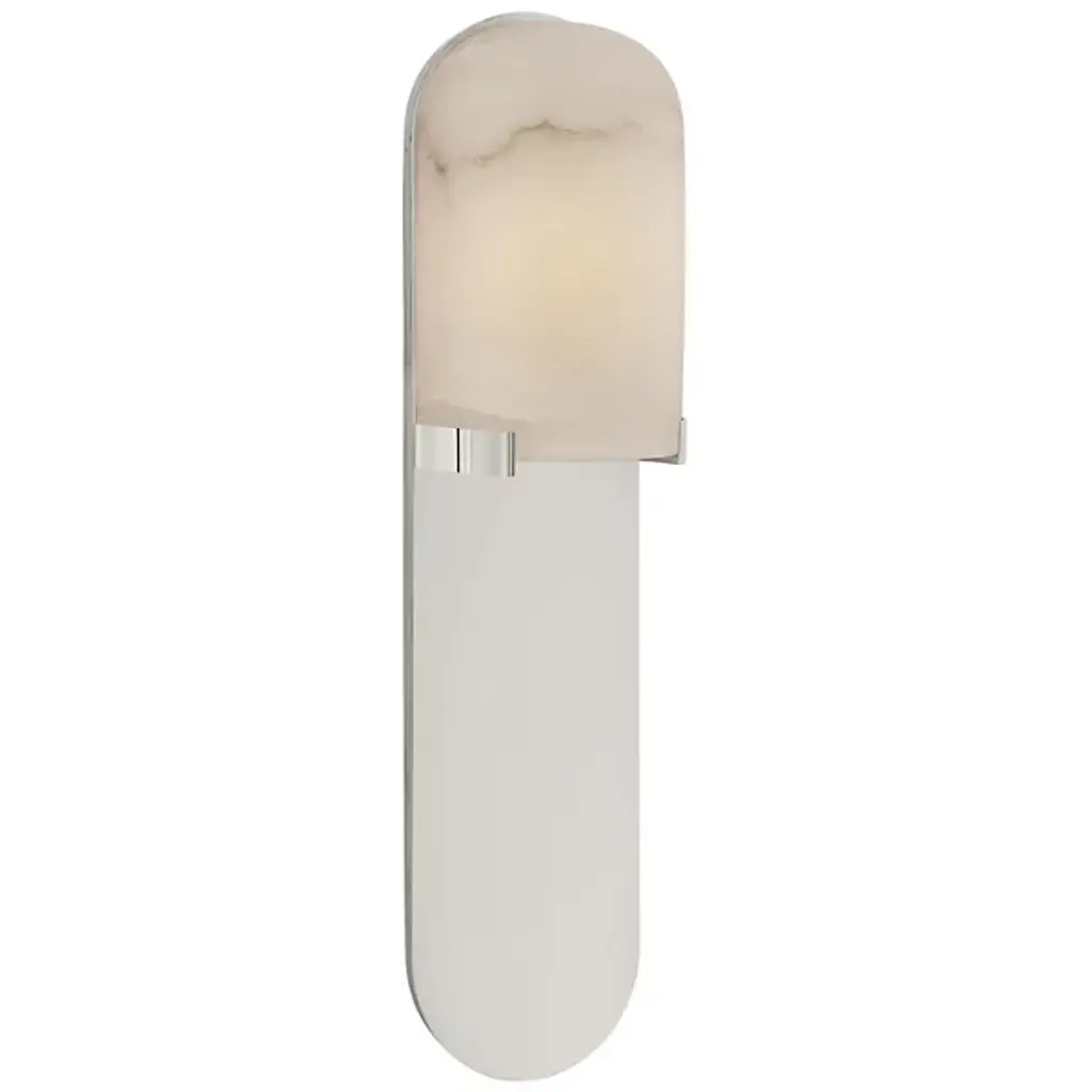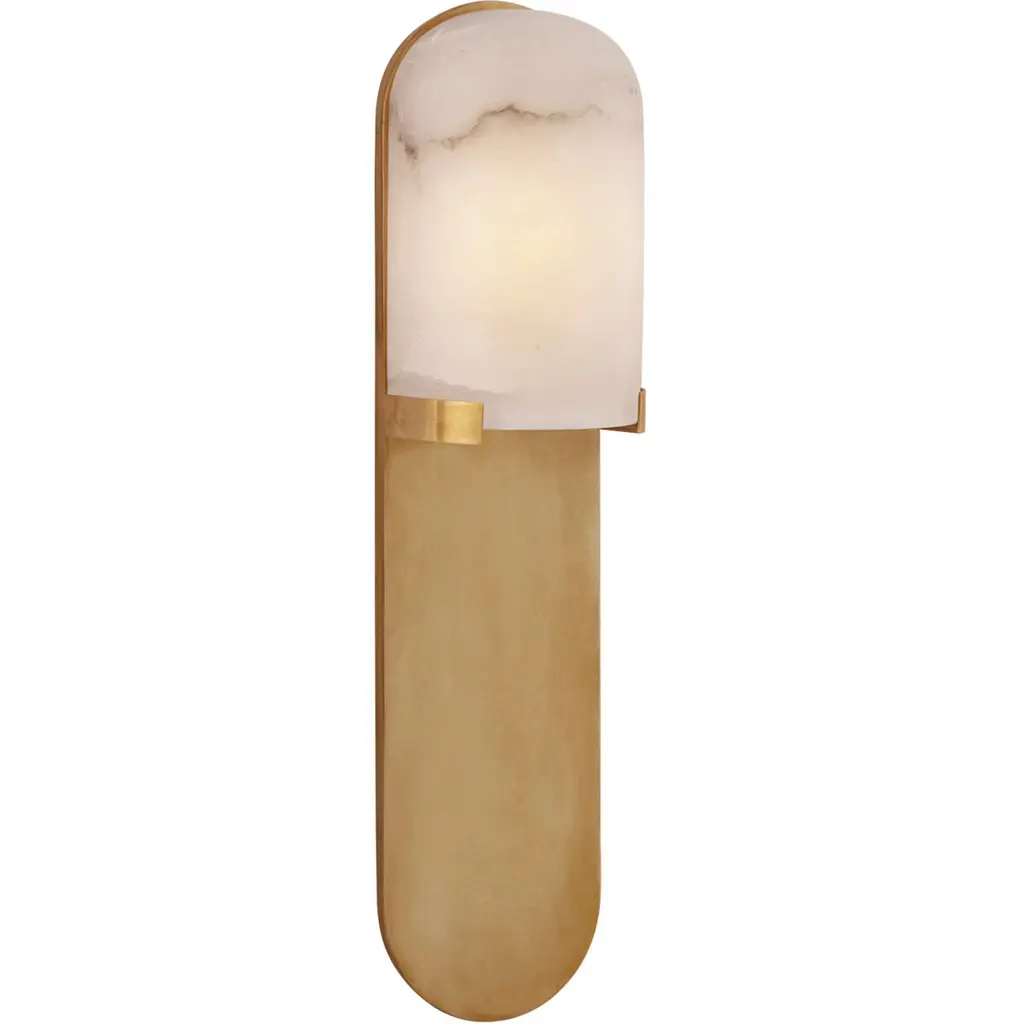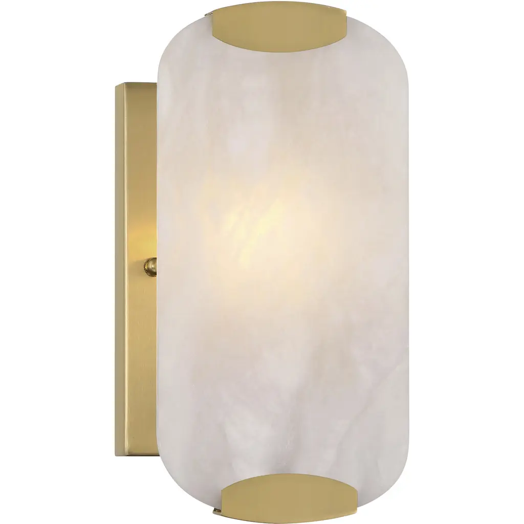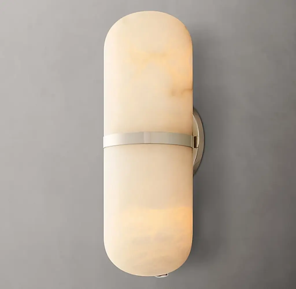 A capsule-shaped shade of richly figured alabaster lends a refined sensibility to our sconce, inspired by midcentury Italian design. Light delivers a warm glow as it passes through the translucent stone, supported by its restrained metal armature.SHOP THE ENTIRE COLLECTION