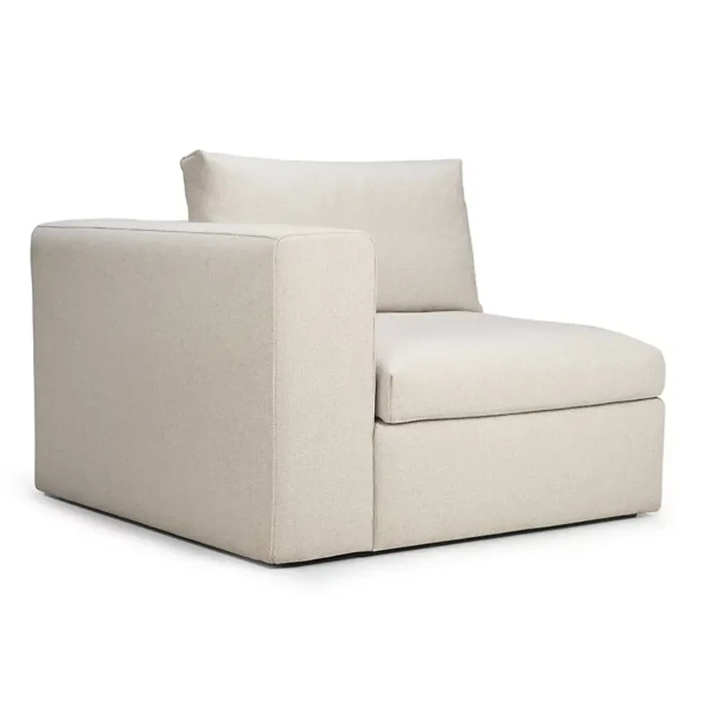 The Mellow Right Upholstered End Seat from Ethnicraft provides a poof of memorable comfort to interiors. Refined and reliable in a simple contemporary package, its strong frame is softened by memory foam cushions, each one surfaced in a stain-resistant eco-fabric that keeps things comfortable. Connector clips allow it to join other Mellow modules or stand on its own as a single-armed lounge seat, while its fine weave creates a memorable, expressive texture.