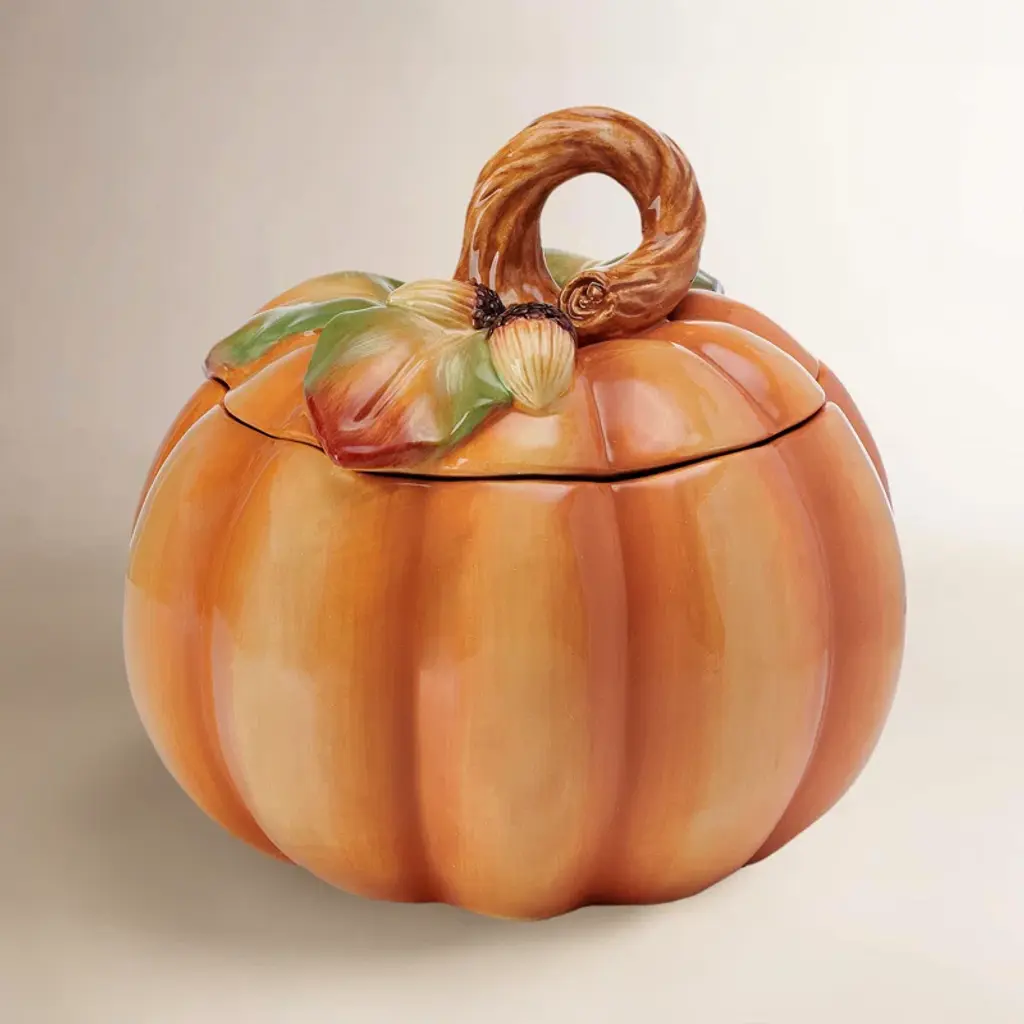 Melon Tureen Matte White & Gold & Stand 6.75"