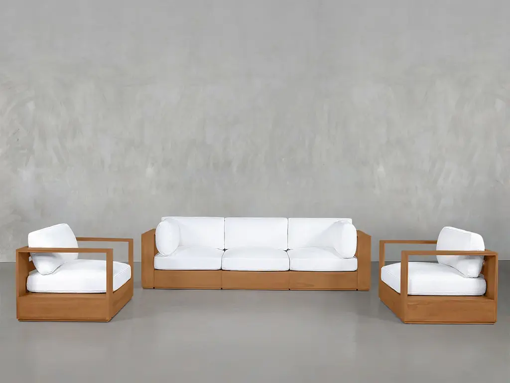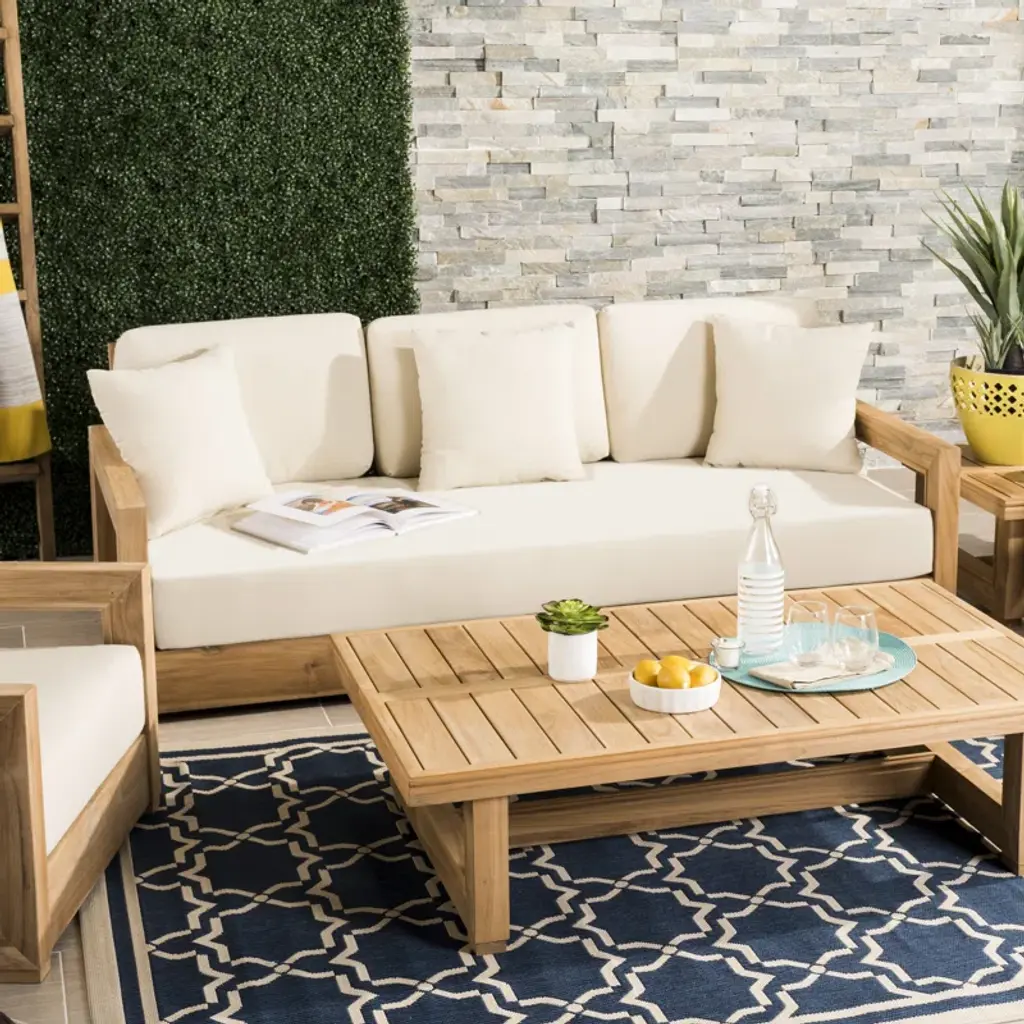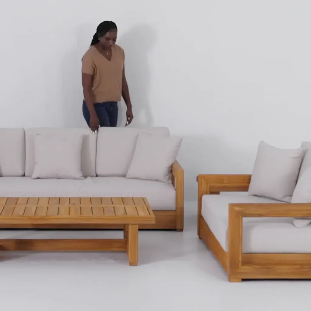 This 5-piece outdoor conversation set will welcome family and friends to your back patio or deck. It includes a sofa, loveseat, armchair, side table, and coffee table. Each piece is crafted from solid teakwood with a natural finish that brings a welcoming, earthy vibe to your space. We especially love the water-resistant seat cushions, which are designed for comfort. The covers also unzip for hassle-free cleaning in the washing machine.