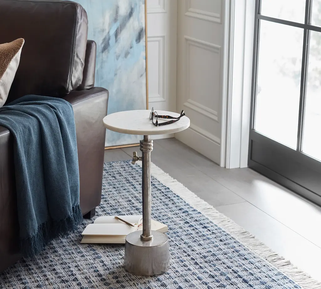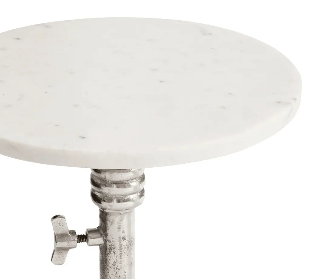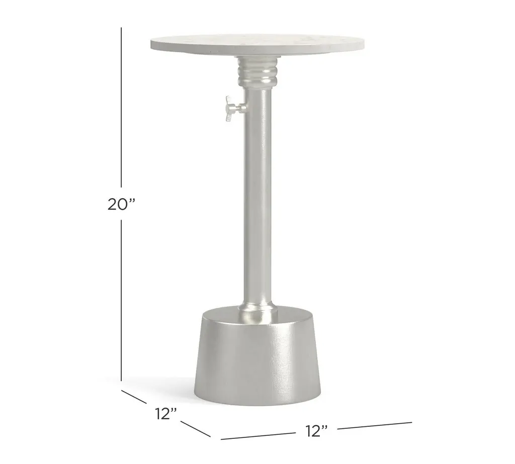 Our Melvin Marble Accent Table brings chic style and high functionality to a space. Place it next to a sofa or use it as space-saving nightstand – the adjustable height lets you customize it to your needs. Available in two finishes, this accent piece is designed to coordinate with a variety of decor styles.