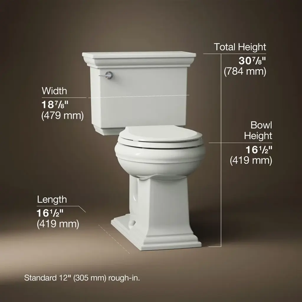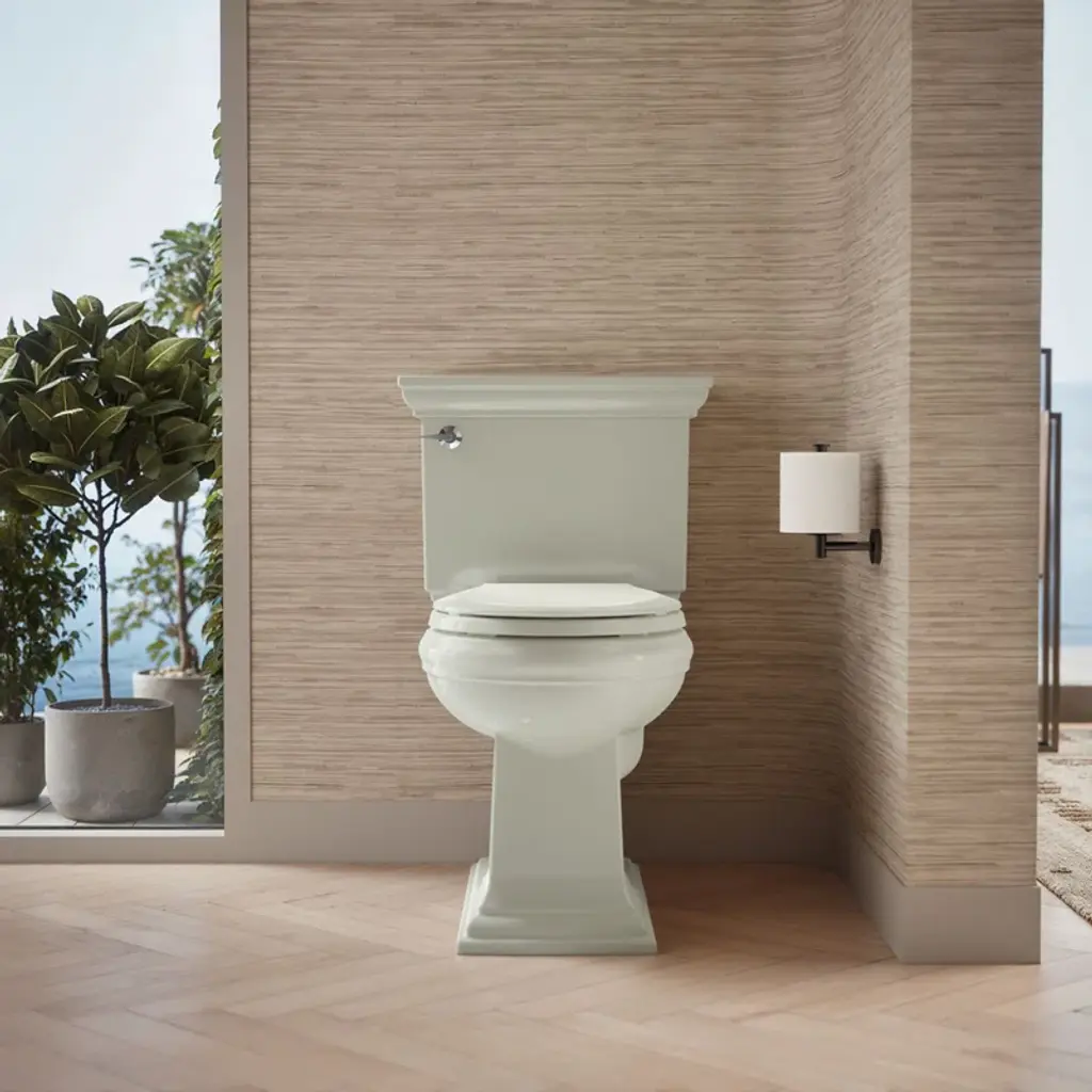 Featuring the elegant architectural look of the Memoirs collection with stately design, this two-piece toilet combines water-saving flush performance with traditional style. A high-efficiency 1.28-gallon flush offers up to 16,500 gallons of water savings per year, compared to a 3.5-gallon toilet, without compromising flush power. The round-front bowl is positioned at a convenient height for comfort and ease of use.