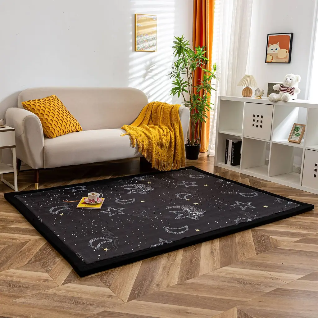 Memory Foam Soft Padded Baby Play Mats Area Rug With Non-Slip Bottom - 3' X 5' - Black Star