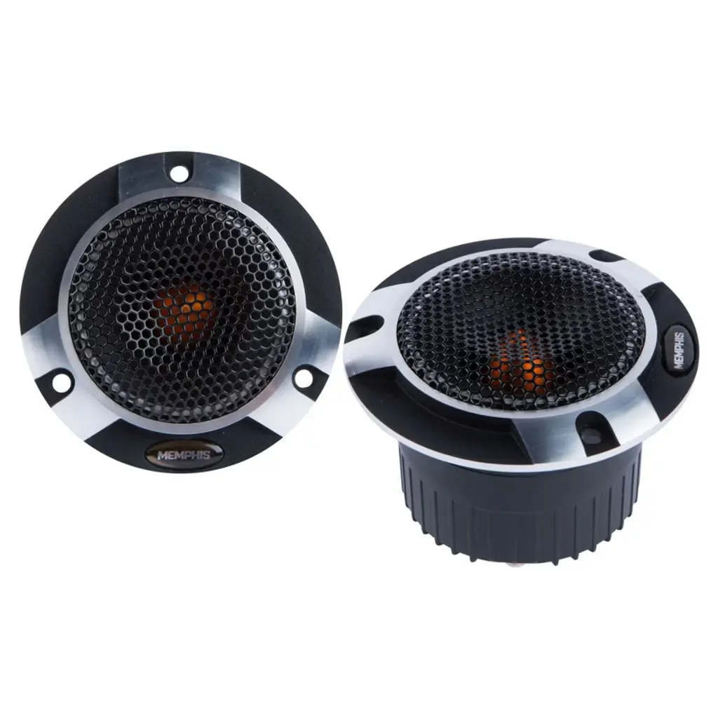 Introducing the Memphis Audio Pro Sound Bundle featuring high-performance audio drivers that will elevate your car audio experience. This bundle includes 2x Memphis Audio SRXP82 SRX Pro 8" 175w 4ohm Mid Drivers with LED - Sold Individually, along with a pair of Memphis Audio SRXPTV2 SRX 4" Pro Tweeters. The Memphis Audio SRXP82 SRX Pro 8" Mid Drivers are designed to handle maximum power, delivering outstanding performance at extreme volume levels. With an accordion cloth surround for maximum excursion capability, these mids will make your audio system stand out. The RGB LED accent lighting adds a visually stunning element to your installation. Combine them with the SRXPT 4" Pro Tweeters for a complete audio setup that commands attention. Key Features: • RGB LED Accent Lighting • Fiberglass filled paper cone with cloth edge • Accordion design for increased excursion and output • 1.5” VC for higher power handling • Center phase plug for improved high frequency response Specifications: • Size: 8" • RMS/Peak Power: 175/350w • Sensitivity: 95dB • Mounting Depth: 2.85" • Magnet Size: 28oz The Memphis Audio SRXPTV2 SRX 4" Pro Tweeters in this bundle offer impressive sound quality at an affordable price point. The 4" Pro Tweeters can handle up to 100w RMS power, ensuring a powerful sound experience that complements your audio system perfectly. These tweeters also come with a protective grill for added durability. Key Features: • 4" Pro Audio Tweeter • 100w RMS power handling • Protective grill included Specifications: • Size: 4" • RMS Power: 100w • Peak Power: 200w • Mounting Depth: 2.22" • Magnet Size: 5.2oz Upgrade your car audio system with the Memphis Audio Pro Sound Bundle, featuring top-of-the-line components that deliver exceptional performance and value for audio enthusiasts. Stand out with the power and clarity of Memphis Audio speakers and tweeters.
