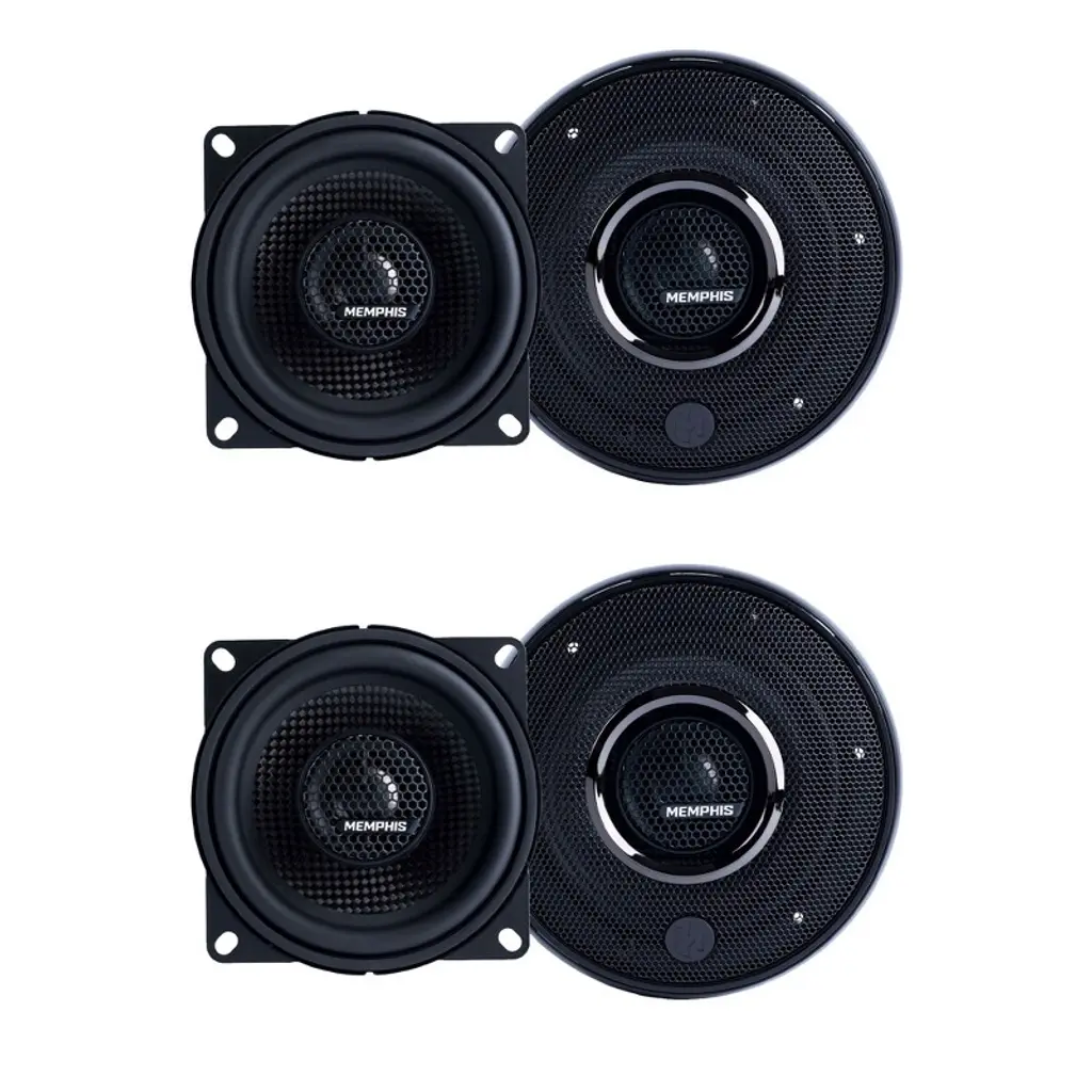 Memphis Audio 15-MCX4 4" Coaxial Speakers With In-line Crossover - PairMemphis is built on a foundation of respect for music and passion for great audio. Our MClass line is a representation of the city that birthed rock and roll and served as an influence to all modern music. MClass provides exceptional sound quality and reproduction that elevates your expectations of what great audio sounds like. Turn up the dial and let MClass sound open your eyes to what quality audio and the heart and soul of Memphis is all about. M-Class coaxial speakers are designed with high performance audio enthusiasts in mind. M-Class speakers are the perfect upgrade for an audio system requiring exceptional clarity and rich full sound. Our line of coaxial speakers are sized to fit most applications making them a perfect solution for discerning audiophiles looking for a serious upgrade. The M-Clip crossover mounting system is a unique feature that allows for quick and easy crossover mounting directly to the back of the speaker or other location keeping the crossover securely mounted in the intended location. Features: • Carbon fiber cone • MClip crossover mounting solution • 0/-3dB tweeter adjustment • Swivel mount tweeter • 2 -Way passive crossover with tweeter protection Specifications: • Size (in) 4" • RMS Power (w) 30 • Peak Power 60 • Sensitivity (dB) 87 • Mounting Depth (in) 1.75 • Magnet Size (oz) 5 • Warranty 2 year • Grill included