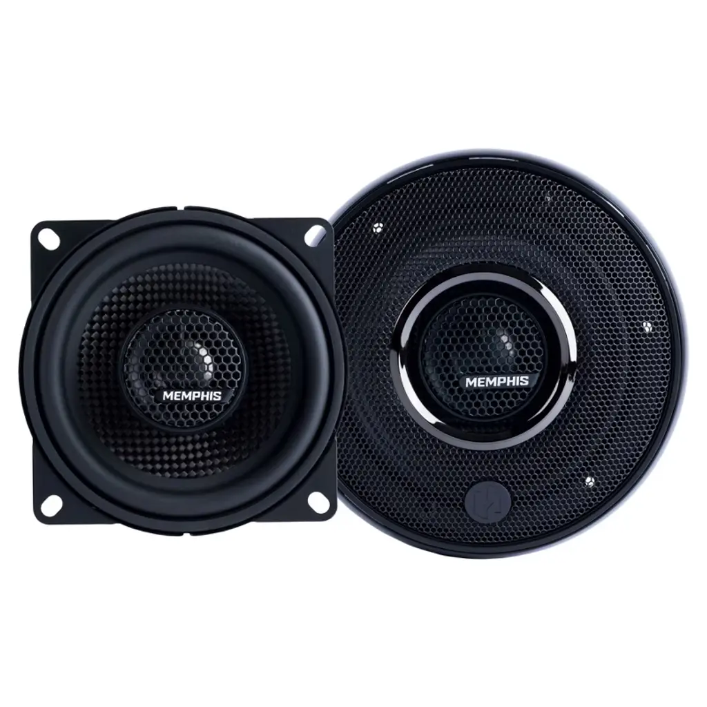 Memphis Audio 15-MCX4 4" Coaxial Speakers With In-line Crossover - PairMemphis is built on a foundation of respect for music and passion for great audio. Our MClass line is a representation of the city that birthed rock and roll and served as an influence to all modern music. MClass provides exceptional sound quality and reproduction that elevates your expectations of what great audio sounds like. Turn up the dial and let MClass sound open your eyes to what quality audio and the heart and soul of Memphis is all about. M-Class coaxial speakers are designed with high performance audio enthusiasts in mind. M-Class speakers are the perfect upgrade for an audio system requiring exceptional clarity and rich full sound. Our line of coaxial speakers are sized to fit most applications making them a perfect solution for discerning audiophiles looking for a serious upgrade. The M-Clip crossover mounting system is a unique feature that allows for quick and easy crossover mounting directly to the back of the speaker or other location keeping the crossover securely mounted in the intended location. Features: • Carbon fiber cone • MClip crossover mounting solution • 0/-3dB tweeter adjustment • Swivel mount tweeter • 2 -Way passive crossover with tweeter protection Specifications: • Size (in) 4" • RMS Power (w) 30 • Peak Power 60 • Sensitivity (dB) 87 • Mounting Depth (in) 1.75 • Magnet Size (oz) 5 • Warranty 2 year • Grill included