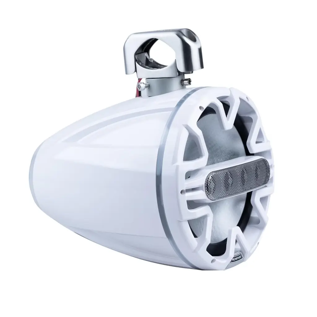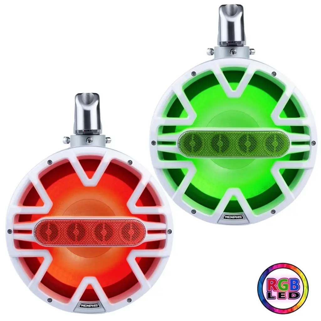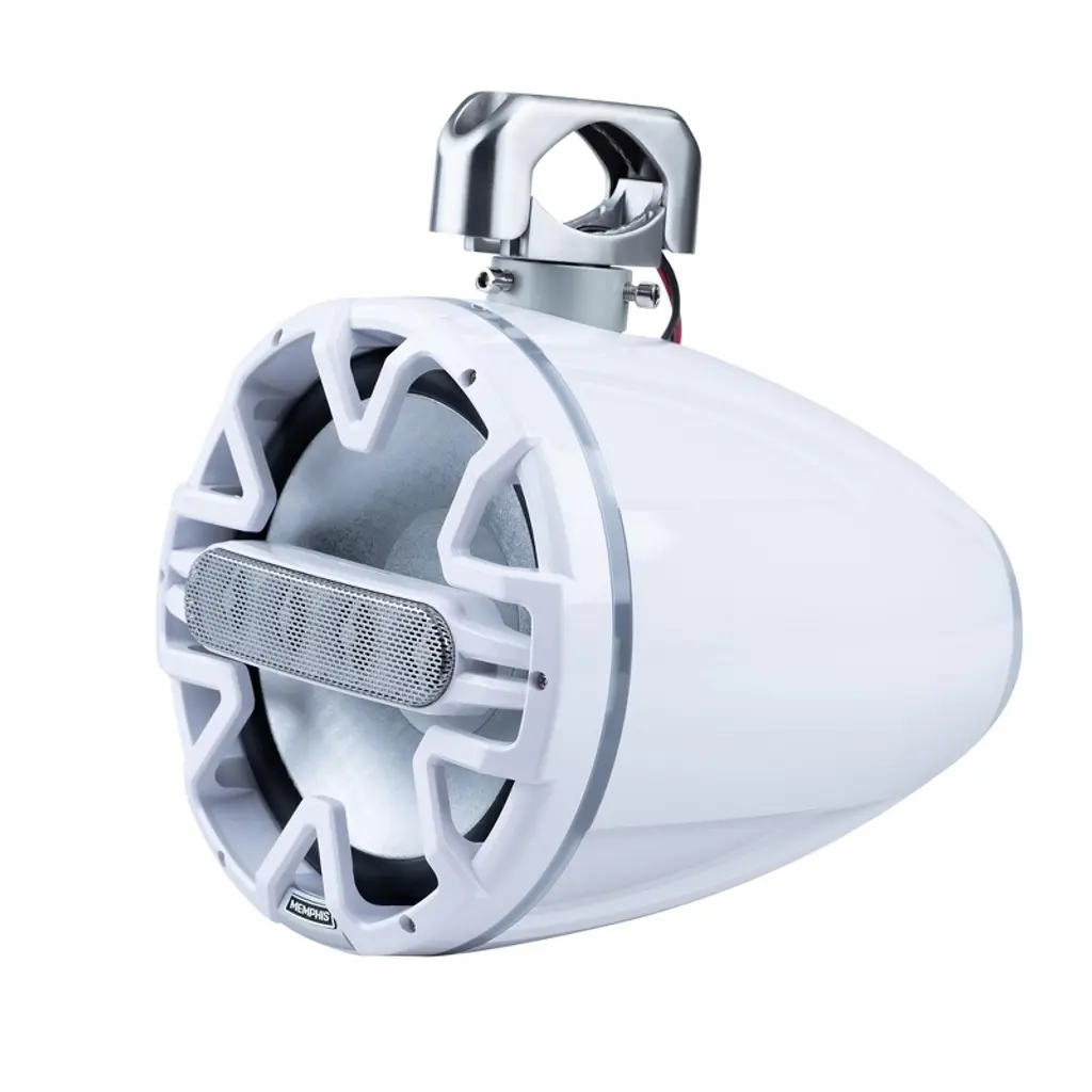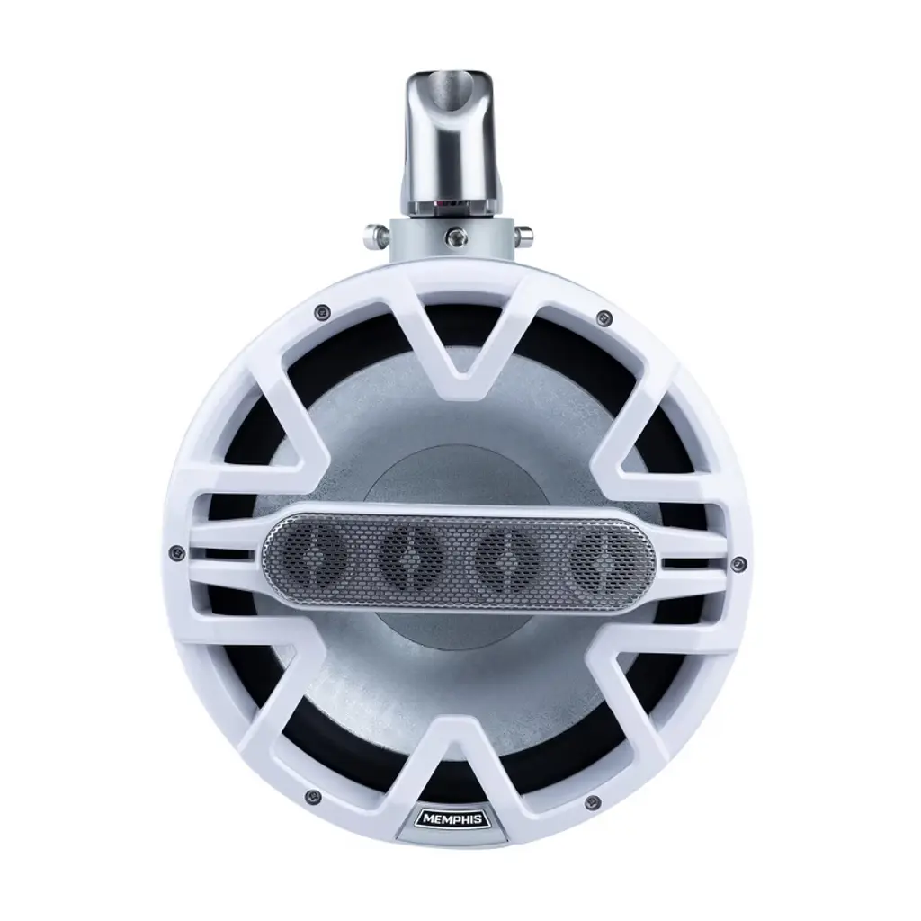 Memphis 10″ tower speakers with ATAC™ Technology are unlike anything ever done in the world of tower speakers. The Advanced Tower Array Construction (ATAC™) utilizes a curved array tweeter design mounted on a bridge across the front of the speaker. This design is similar to designs seen in concert line array dispersion systems used to fill arenas with intense accurate sound reproduction. This technology is superior to traditional compression horn tower speakers in terms of sound quality, performance and durability. A standard compression horn speaker requires a horn tweeter to intersect the woofer inside the tower. This results in a gap which requires a gasket. This gasket reduces the effective surface area of the woofer and also ads weight to the woofer making it less efficient. These two factors result in less output from a traditional compression horn tweeter. The ATAC™ design maximizes the surface area of the woofer for increased output and mid bass. This design also allows the woofer to ve fully sealed which prevents water and debris from entering into the tower speaker. This fully sealed design is imperative in terms of durability in marine and saltwater applications. The curved tweeter array design also allows for maximum dispersion of sound. The 4 tweeter design is capable of churning out massive sound which is unrivaled by any compression horn tower speaker in its class in terms of clarity, output at any angle from behind your boat. Features RGB lighting front and back of the enclosure Cast stainless steel brackets fits 1.75-3” bars Easy 360o swivel brackets Surface mount brackets included ASA plastic enclosure Sealed electrical connections Easy to rotate logo badge Easy to rotate front grille IP66 rated Stainless steel array grille 10” – 300W RMS, 600 PEAK. 4 tweeter line array Shadow Black Finish Specifications: Color: White Size: 10 RMS/Peak: 300/600 Impedance: 4 Dimensions H / W / D: 14.3 x 10.83 x 13.9 Clamp Fit: 1.75” to 3” Grill Included: Yes