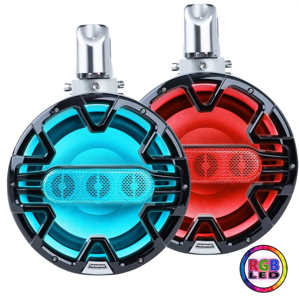 This bundle includes the Memphis Audio MM84TCVR 8" Outdoor cover for MM84T tower speaker pair, MM84TW 8" Tower Speakers with ATAC™ Technology and Swivel And Surface Mount Brackets - White, Pair, and MM600.2V 2-Channel Marine Amplifier, 300x2 at 2 Ohm. The Memphis MM84TCVR covers protect your 8" tower speakers from sun and elements, with easy removal handles for safe storage. Compatible with MM84TB, MM84TW models. Memphis MM84TW Tower Speakers feature Advanced Tower Array Construction for superior sound quality and durability. Includes RGB lighting, swivel brackets, sealed connections, IP66 rating, and 200W RMS power. Dimensions: 12.5 x 9 x 11.9. The Memphis MM600.2V Marine Amplifier is built to withstand marine environments. Features IPX5 rating, sealed chassis, and conformal coated boards. User-friendly design with removable power terminal, sealed connectors, and top-mount controls. Offers protection against Overload/Short Circuit/Thermal & Reverse Polarity. Variable Bass Boost and fully variable crossover. Ideal for marine audio setups, this bundle ensures top-notch performance and durability for your outdoor sound system. Memphis quality and innovation in every component, giving you a complete and reliable audio solution for your boat or outdoor vehicle.