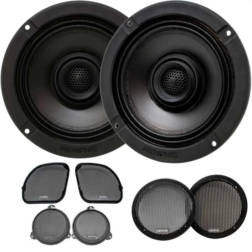 This bundle features the Memphis Audio MS60V - 6.5" Oversized Convertible Set and the Memphis MSCKIT MSeries Coaxial to Component Conversion Kit. The MSeries speakers offer premium sound quality with a carbon fiber cone, aluminum dome tweeters, and customizable mounting options. The coaxial tweeters can be converted into a component system with the MSCKIT, enhancing sound staging and imaging. The kit includes phase plugs and versatile tweeter mounts for surface or flush installation. With convertibility and adaptability, the MSeries speakers ensure an exceptional listening experience. The Memphis Audio MS60V speakers have a size of 6.5 O/S, RMS/Peak power of 75/150 watts, 89 dB sensitivity, 2.48-inch mounting depth, and a 10 oz magnet size, making them ideal for a wide range of installations. The speakers come with external passive crossovers, MClip crossover mounting solution, and rubber surround for enhanced durability. A 2-year warranty is included, with grill protection for added longevity. The Memphis MSCKIT allows you to convert your MSeries speakers into a component system by providing phase plugs for all speaker sizes, along with surface and flush mount tweeter cups. This comprehensive kit offers versatility and precision, enabling easy separation of tweeters for improved imaging and installation flexibility. By converting your coaxial speakers into components, you can elevate your audio experience to a superior level, fitting various applications seamlessly. Key features of the MSCKIT include phase plugs accommodating all MS speaker sizes, 2 surface mount tweeter cups, and 2 flush mount tweeter cups. The conversion kit is designed to seamlessly integrate with MSeries speakers, ensuring optimal performance and expanded installation options. Upgrade your audio system with this conversion kit to unlock the full potential of your MSeries speakers and enjoy a customized listening experience like never before.