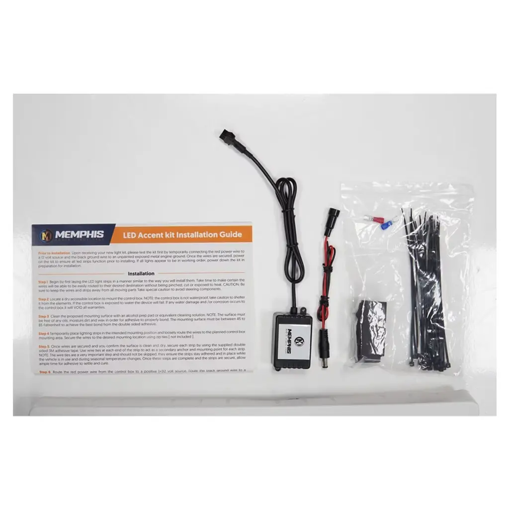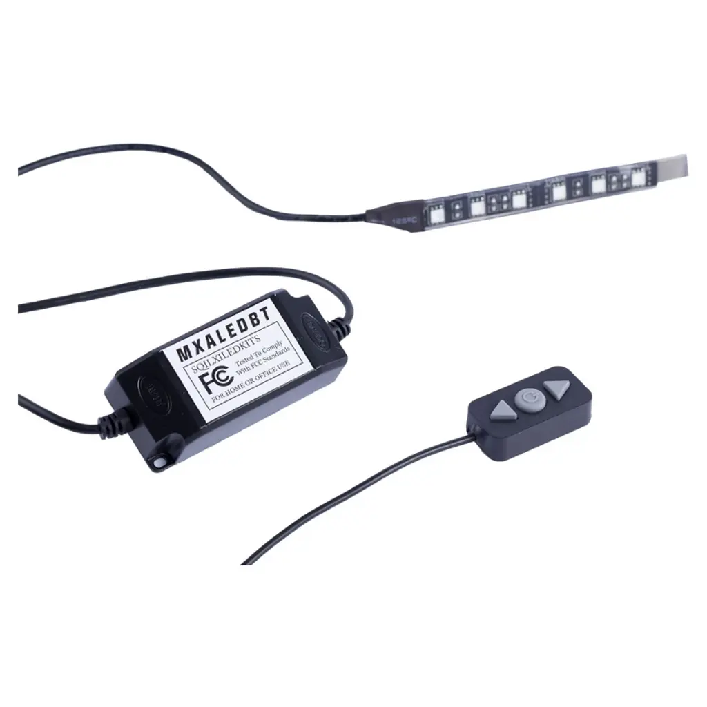 MXALEDBT kits are give you the ultimate control over your LED lighting. Each kit contains 10 individual 4.5" RGB LED strips. Take control of your LED kits via Bluetooth using the Memphis LED application available for iOS and Android. Control 9 speeds of flashing and fading along with music mode to make your lighting dance to music. Over one million color combinations are available to make your vehicle one of a kind. Expand your LED system to include speaker LED light rings and sync every element of your LED light system. The LED light strips provided are resistant to water and elements and have 3M adhesive backing for a simple peel and stick application. Place your lights, run your wires and take control of your lighting! Music Mode Million color combinations 10 individual 4.5" strips with 60 total RGB LEDs 9 speed flashing and fade modes Slim easy hidden control box Optional wired remote control Last function memory 4-button key chain remote (optional)