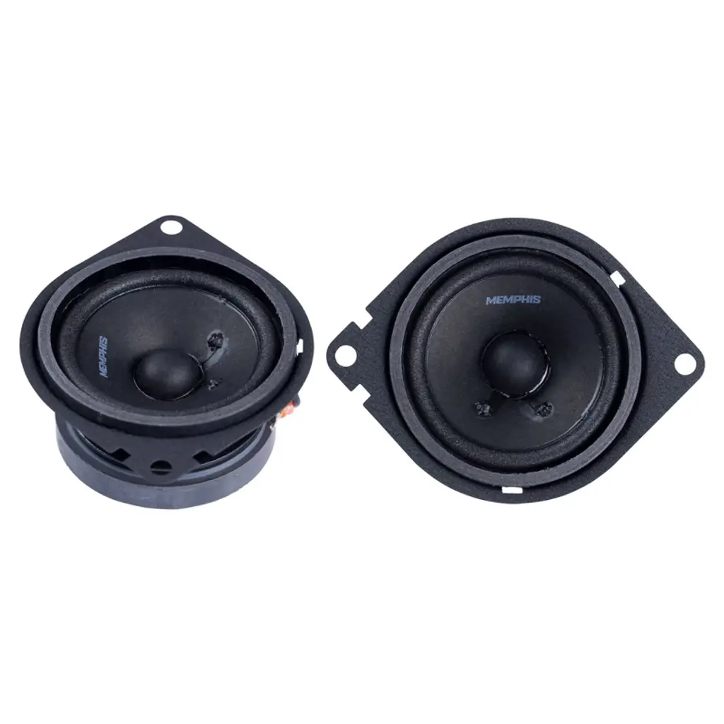 Upgrade your vehicle's audio system with the Memphis Audio PRX60C Power Reference Series 6.5" Oversize Component Speakers With 1" Tweeters - Pair and the Memphis Audio PRX27 Power Reference Series 2.75" Full Range Speakers - Pair. The Memphis Audio PRX60C speakers deliver high-quality audio and durability with features like a polypropylene cone for accurate sound reproduction, butyl rubber surround for longevity, and a separate poly dome tweeter for crisp highs. These component speakers are ideal for factory audio upgrades and come with a dedicated crossover for optimized performance. They boast a sleek black-on-black M-Cone design and have a size of 6.5 inches, RMS Power of 50W, Peak Power of 100W, and a mounting depth of 2.5 inches. In contrast, the Memphis Audio PRX27 speakers combine quality and reliability, featuring a polyurethane surround, PEI dome tweeter, and a multi-direction pivot tweeter system. With a size of 2.75 inches, RMS Power of 15W, Peak Power of 30W, and sensitivity of 85 dB, these speakers are a great option for a solid audio upgrade. The PRX27 speakers come with a 1-year warranty and have a magnet size of 3 oz, making them a reliable choice for your car audio needs. Upgrade your vehicle's sound system today with this powerful bundle.