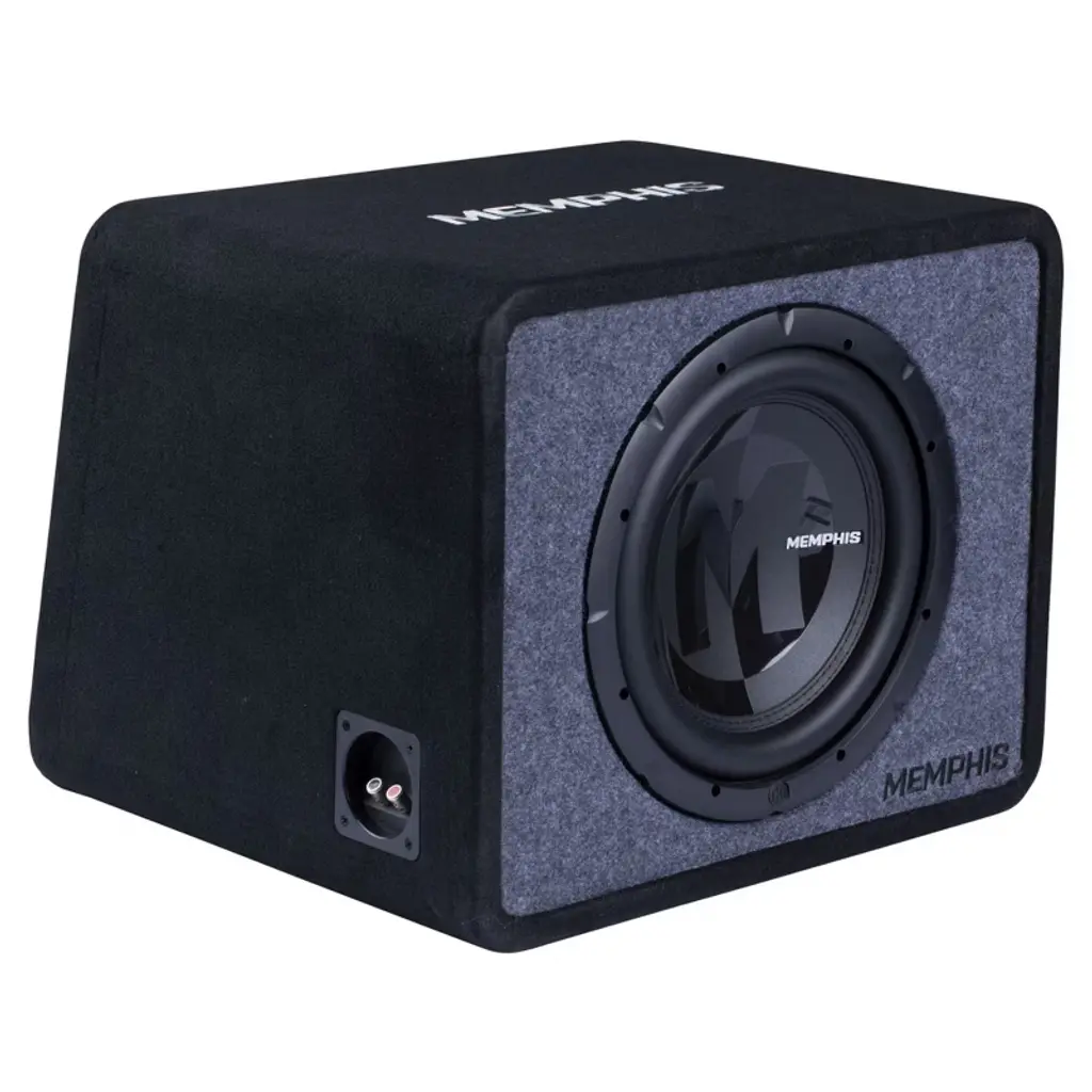 Want a big bass upgrade? Our Bass Systems have everything you need to add extra lows to your vehicle. These systems have built-in amplifiers and subwoofers for an all-in-one solution. We also offer an array of loaded enclosures which are non-amplified enclosures engineered to the exact Thiele/small parameters for the subwoofer they are showcasing for maximum output. Power Reference subwoofers are known for their exceptional sound and performance. Memphis has taken Power Reference to the next level with Power Reference enclosures. These enclosures were engineered by our technicians at Memphis to the exact T/S parameters of Power Reference subwoofers to maximize their performance without the need to build a custom enclosure. We took time to wrap these enclosures in a two-tone carpet with custom stitching to make them look as great as they perform. Available in a range of sizes, PR loaded enclosures have everything that is needed to elevate your vehicles low end performance. Features: • 100% MDF ported enclosure • Dado groove construction • Side-loaded port • Two-tone embroidered carpet • High current nickel plated compression terminals • 2Ω single 12" PR subwoofer • Perfect match for PRX300.1 Amplifier Specifications: • Size (in) Single 12" • RMS Power (w) 300 • Subwoofer Peak Power (w) 600 • Sensitivity (dB) 86 • Magnet Size (Oz) 60 • Voice Coil Diameter (in) 2 • Dimensions (in) 19.96 x 18.46 x 15.82 • Impedance 2Ω
