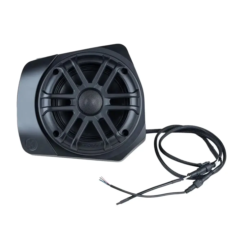 Memphis Audio direct fit OEM Polaris Ranger rear roof speaker pods are designed to fit directly into your underneath the rear roof of your Polaris Ranger with zero custom fabrication required. These lightweight durable rotomolded speaker enclosures are tuned for maximum output. The fully sealed design of these speakers make them one of the most durable direct-fit OEM solutions on the market. These speakers are specifically designed to work with factory Polaris Ranger roof systems. These pods feature RGB LED illuminated cones for an ultra-cool lighting effect. All the components used in this kit are marine grade and designed to withstand water and the elements. These speakers are only designed for 2018+ Ranger models with factory roof systems. If you do not have a roof, Memphis MXA62PS Rear pods are an ideal solution for your vehicle. FEATURES • Injection molded rear speaker pods • Coaxial speaker with tweeter bridge • Fully sealed design for water resistance • Direct fit OEM mounting locations • RGB lit speaker • Mounting hardware included • Plug & play harness included *NOTE: Minimal cutting on headliner is required to remove pre-embossed speaker cutouts SPECIFICATIONS RNGR65FE18 RMS Power (w): 75 Peak Power (w): 150 Sensitivity (dB): 92