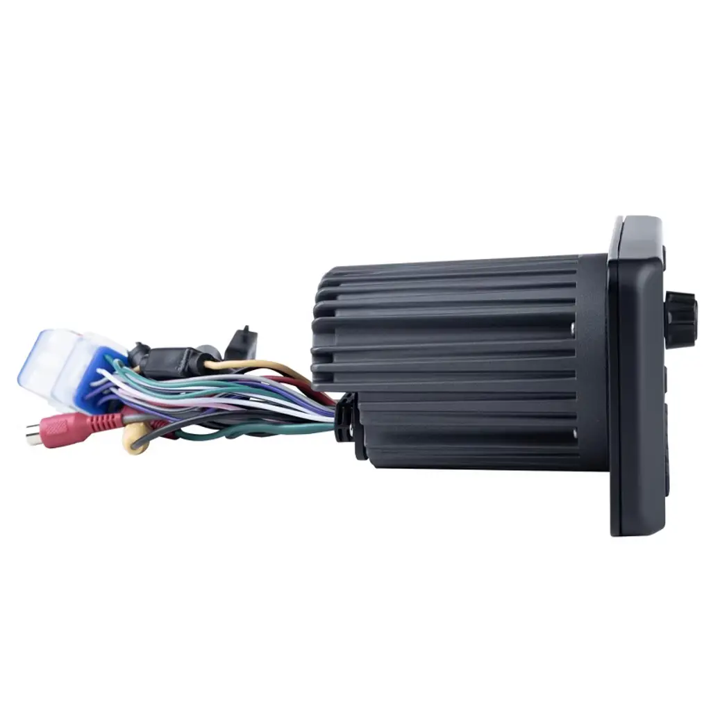 Enjoy AM/FM Radio and Bluetooth audio streaming with easy-pair technology. The internal amplifier produces 50 watts x 4 channels allowing you to power your speakers directly off headnut power, or you can add additional speaker and subwoofer amplifiers via the Front/Rear/Subwoofer outputs. This unit features a video input to easily attach a back up camera and display it directly from the full color display. The MXA1MCR remote is compatible with this unit allowing you to control your audio from multiple different locations on your boat. Specifications - • Power Handling: 4 x 50W • Cut Out Size: 3" • Mounting Depth: 4" • Face Dimensions: 5.5 x 3.5 • IP Rating: IPX66