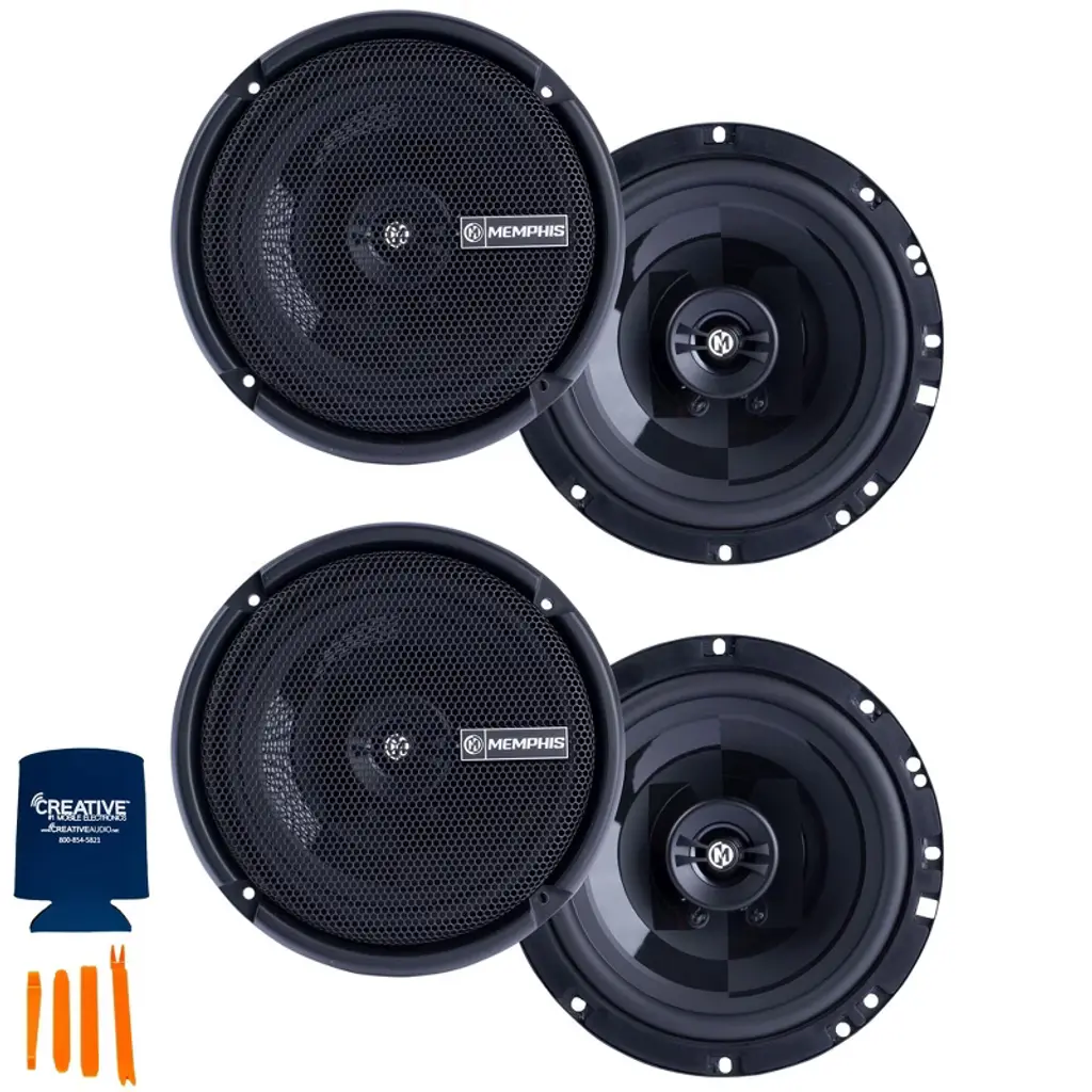 Memphis Audio Speaker Bundle: 2 Pairs of PRX603 Power Reference Series 6.5" 3-Way with Swivel Tweeters. Bundle Components Include Memphis Audio PRX603 Power Reference Series 6.5" 3-Way Coaxial Speakers With Swivel Tweeters - Pair (2), 4- Piece Car Door Trim Panel Dash Stereo Radio Installer Removal Pry Tools Plastic CA-PRYKIT (1), Creative Audio Coozy CACOOZY (1). PRX603 Features - • Polyurethane surround • PEI dome tweeter • Multi-direction pivot tweeter system • Stealthy black-on-black M-Cone design PRX603 Specifications - • Size (in) 6.5" • RMS Power (w) 50 • Peak Power 100 • Sensitivity (dB) 88 • Mounting Depth (in) 2.25 • Magnet Size (oz) 10 • Warranty 1 year • Grill included CA-PRYKIT Features - • Unique design allows access under trim to remove piece correctly--at the fastener point • Versatile tool set that pays for itself with just one use; saves time and frustration • Professional-grade kit of 4 incredibly useful tools for removing auto body trim and molding • Easily remove Trim, Molding, Door panels and Dashboards. • Works on interior and exterior trim, wide edge remover, narrow edge remover, pull-type remover, handle remover and upholstery clip remover CACOOZY Features - • Keep those beverages cold while getting that system installed.