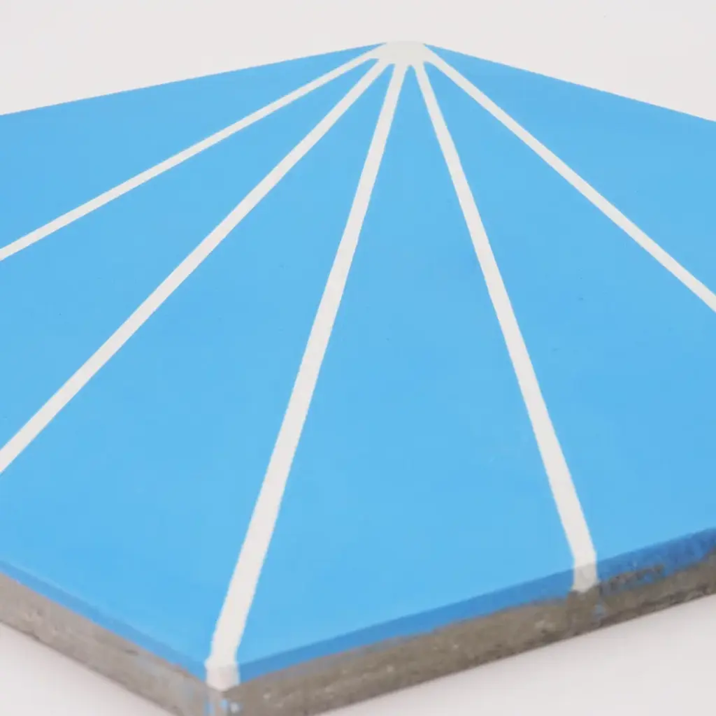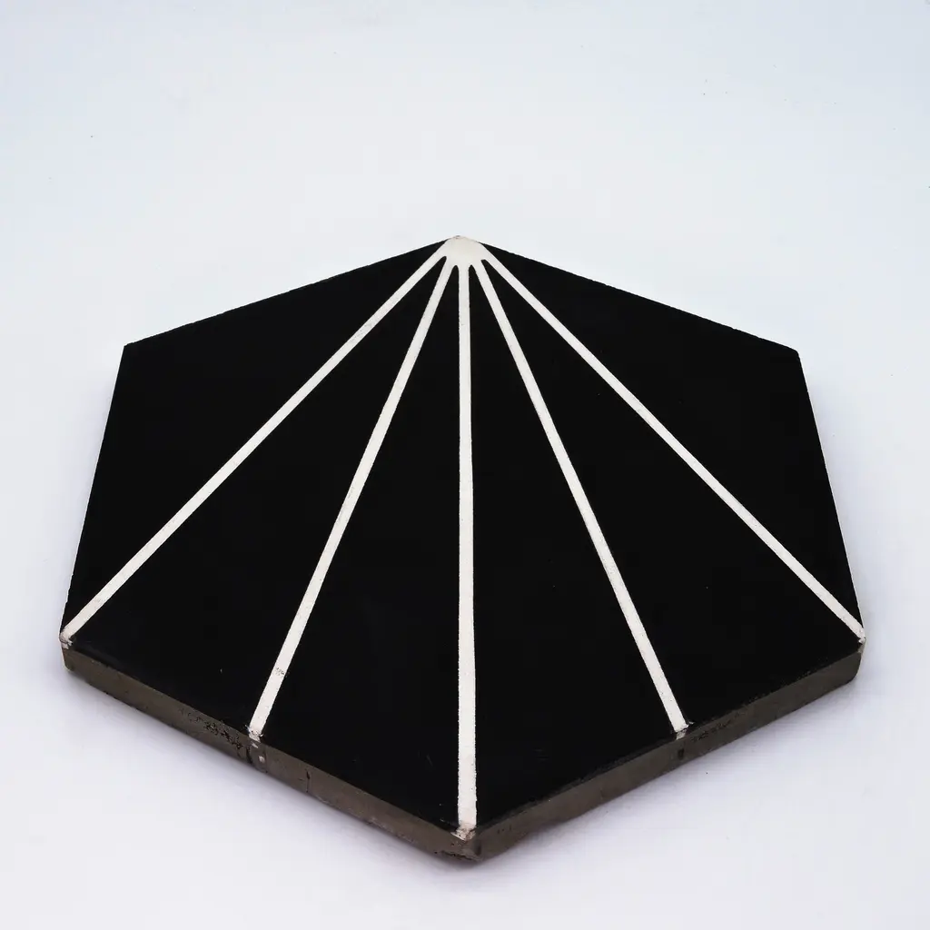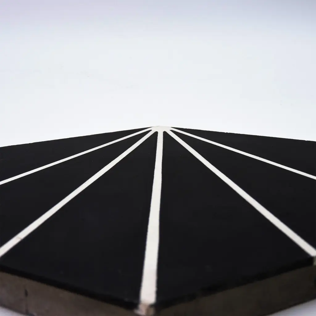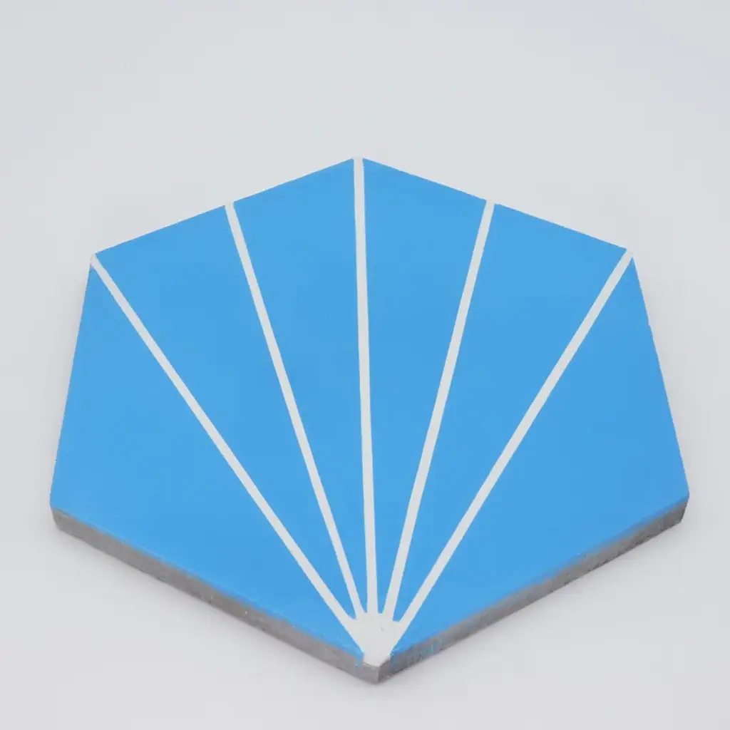 Think outside the box and install these eye-catching hexagonal-shaped tiles. Add these tiles to your kitchen, bathroom, or even patio for an instant refresh. Made from cement, these 6-sided tiles feature a striped pattern in the colors of your choice. They are rated for heavy foot traffic areas and are sealed to resist water, making them an ideal choice in your shower, entryway, or even kitchen counter. A square of tile measures 8" x 9", and they arrive in cartons of 12.