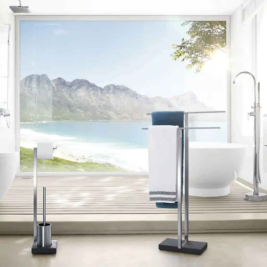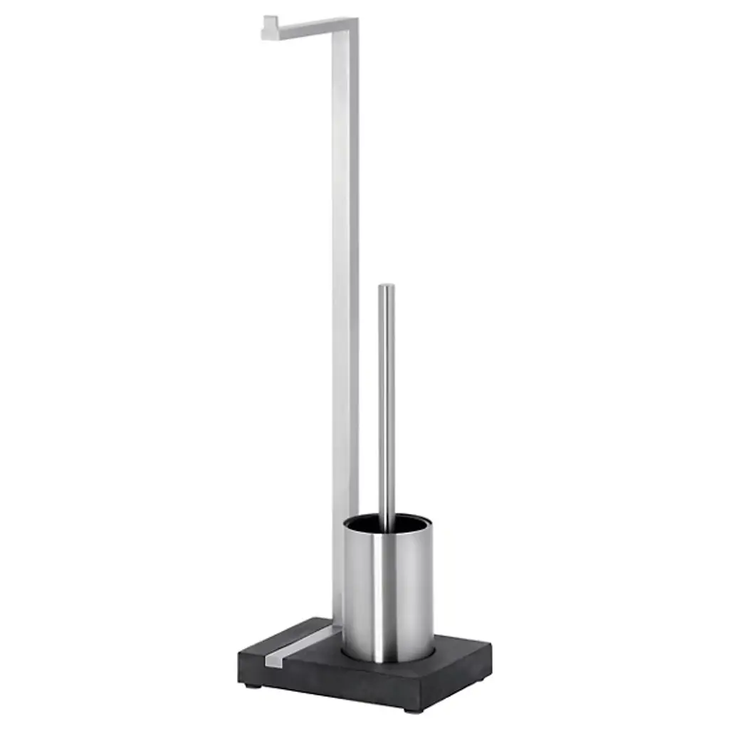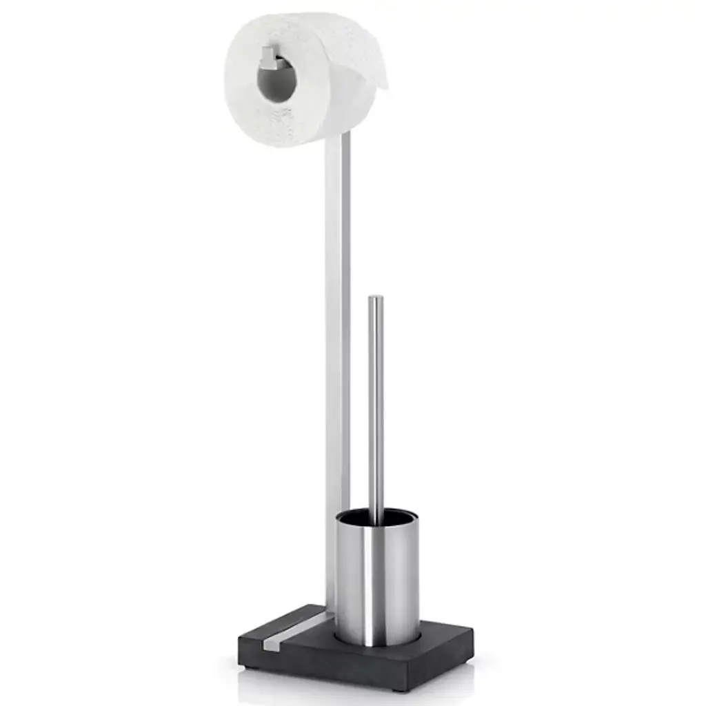 It's a dirty job, but someone has to do it. The Blomus MENOTO Single Roll Toilet Butler is at the ready to provide a single roll of toilet paper and--when the time comes--a brush for scrubbing the toilet clean. The sleek stainless steel structure resides stably atop a dark grey, weighted Polystone base.