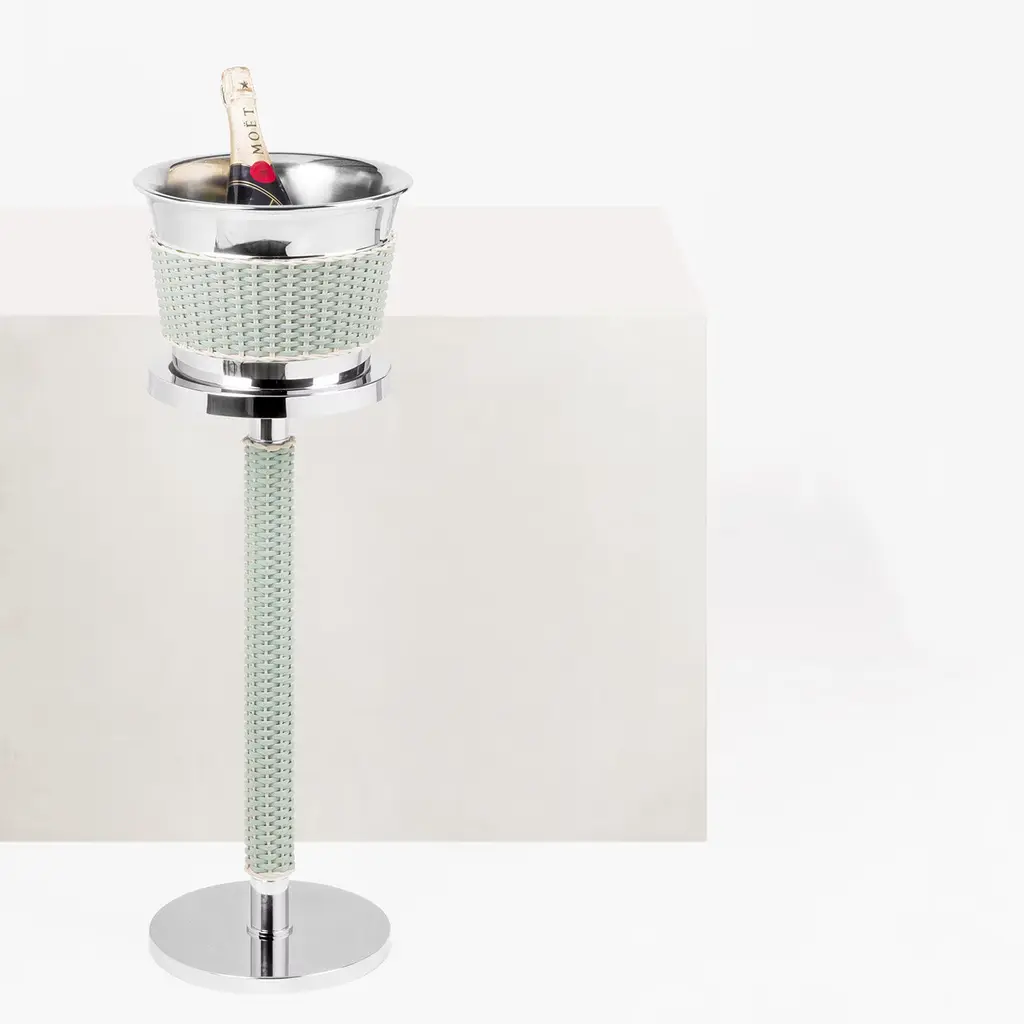 Menton Green Leather & Rattan Champagne Bucket With Stand