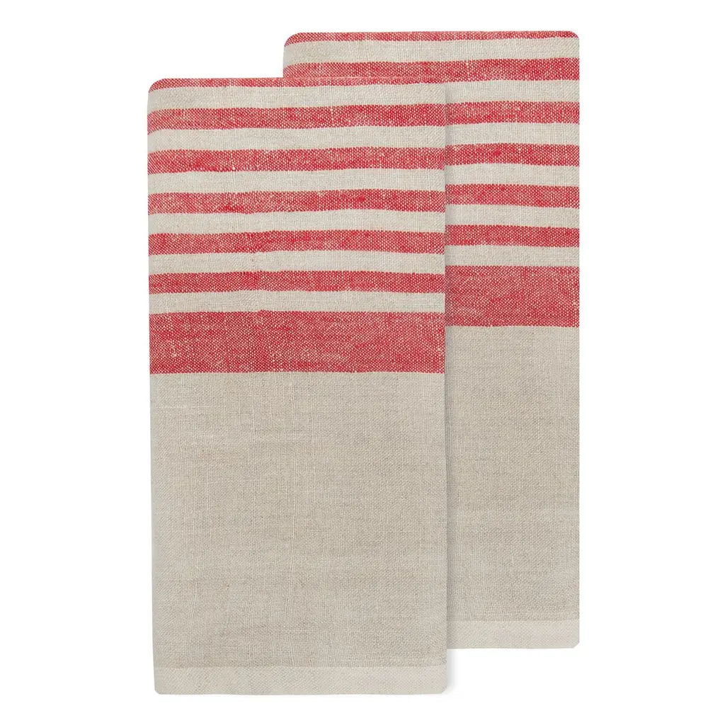 The Menton tea towel set brings a touch of French café elegance to your kitchen or dining room. Crafted from a luxurious heavyweight linen and cotton blend, these towels feature a timeless narrow stripe design in a natural color palette, adding subtle charm to any space. Hand-tied details lend a unique, handmade touch, making them as beautiful as they are functional. Machine washable and easy to care for, these oversized towels are perfect for everyday use. Pair them with the "Eze" tablecloth to complete your look for a cohesive, stylish dining experience. Sold in a set of 2, the Menton tea towels effortlessly elevate your space with their practical elegance.