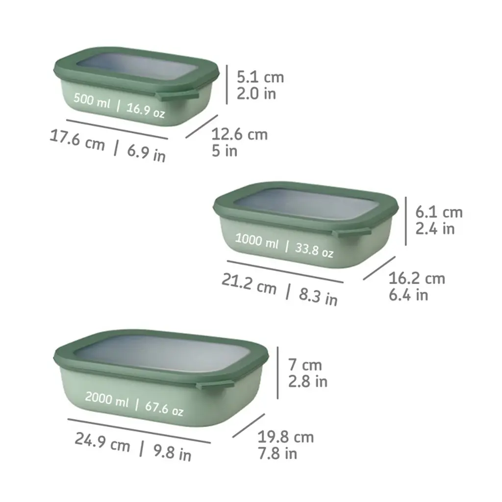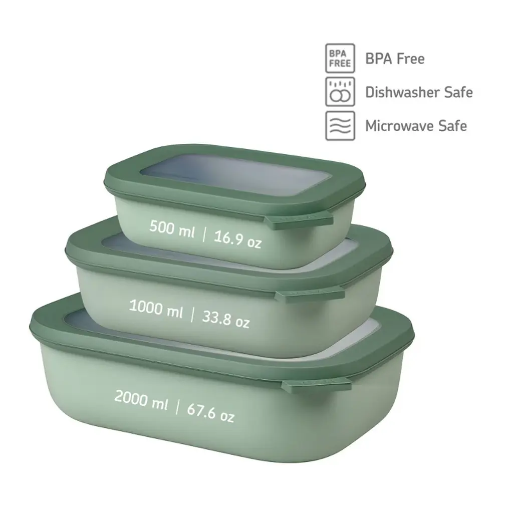 European Made. B Corp Certified! Cirqula by Mepal has been designed specifically for a complete 'circle of use'. The food in these bowls can be stored in the freezer/fridge, heated in the microwave (without the lid) and can then be served directly to the table. Made of indestructible material and the transparent window in the lid allows you to see the contents clearly. The innovative, flexible lid is 100% airtight and leak proof. Practical and easy to store, can be stacked when they are filled and nestled together when empty.