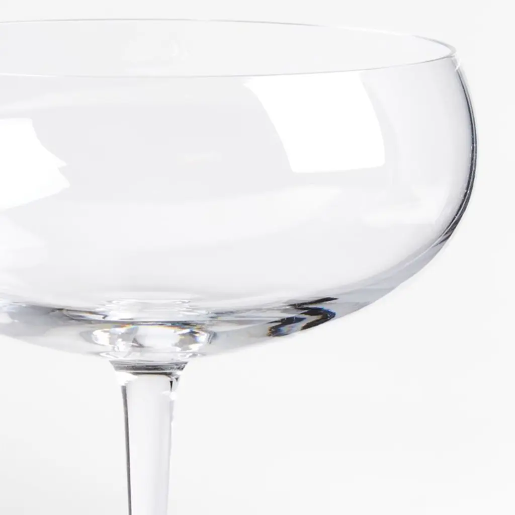 Also known as a Champagne saucer, the coupe glass is an enduring classic known for its wide, shallow bowl. Our modern update rounds out the bowl even more in perfect balance to the slim stem. A lovely way to serve "up" cocktails, dessert drinks or a dollop of zabaglione, the coupe glass joins Mera champagne and wine glasses for a well-coordinated table or bar.