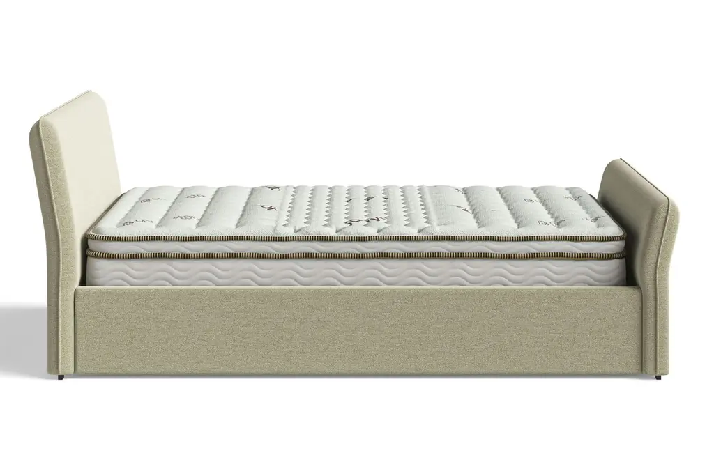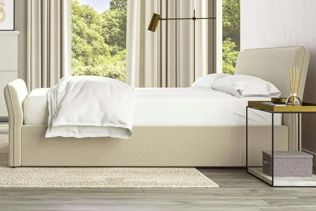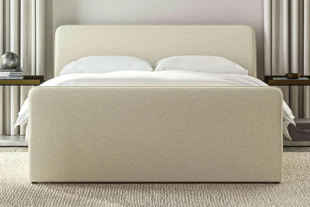 Inspired by the charming and cozy Italian town where it takes its name, the Merano bed frame reimagines the sleigh bed silhouette with its gently angled headboard and footboard. No foundation or box spring required.