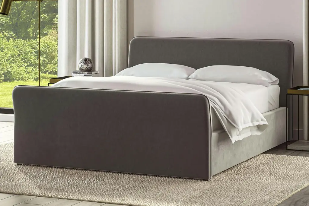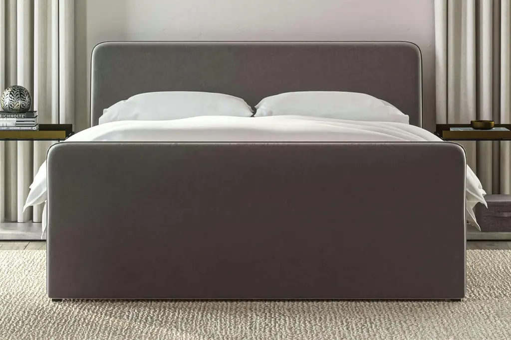 Inspired by the charming and cozy Italian town where it takes its name, the Merano bed frame reimagines the sleigh bed silhouette with its gently angled headboard and footboard. No foundation or box spring required.