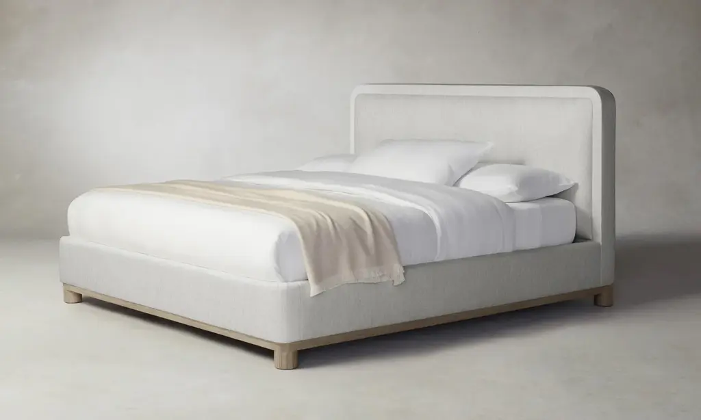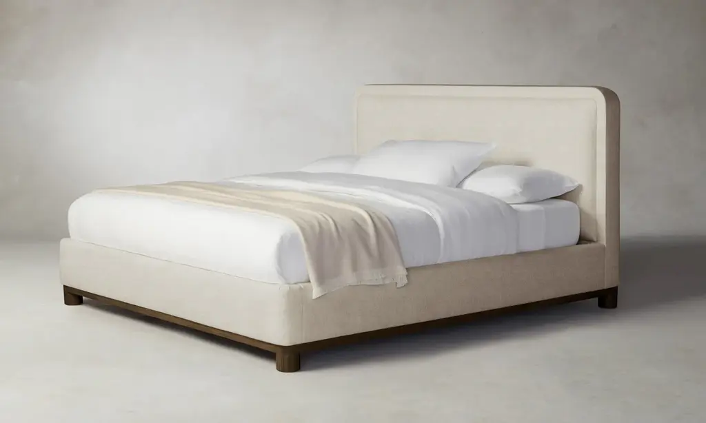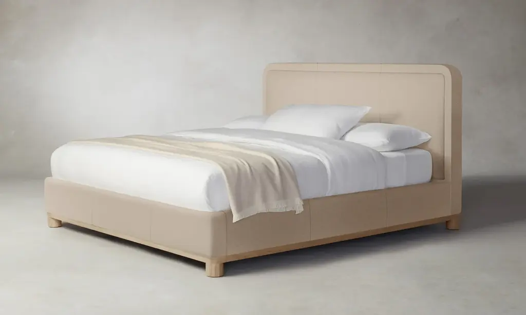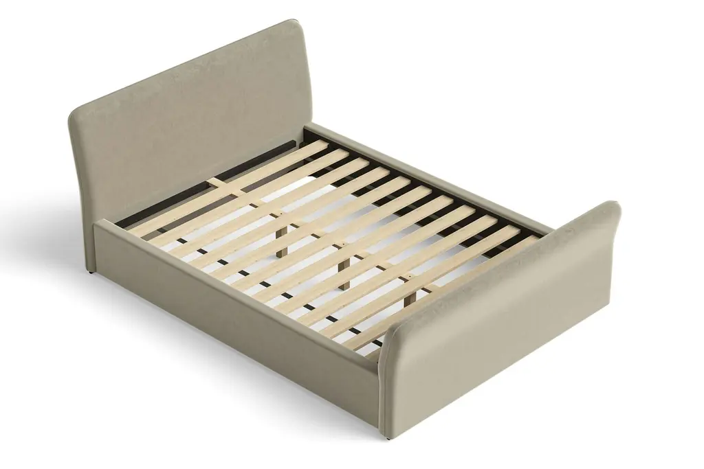 Inspired by the charming and cozy Italian town where it takes its name, the Merano bed frame reimagines the sleigh bed silhouette with its gently angled headboard and footboard. No foundation or box spring required.
