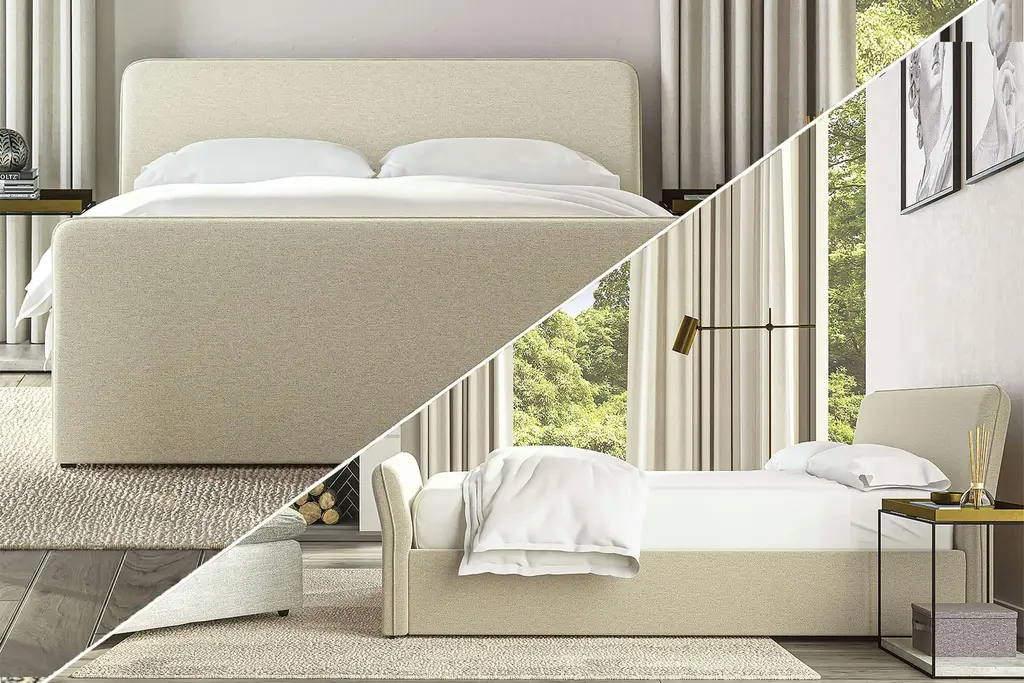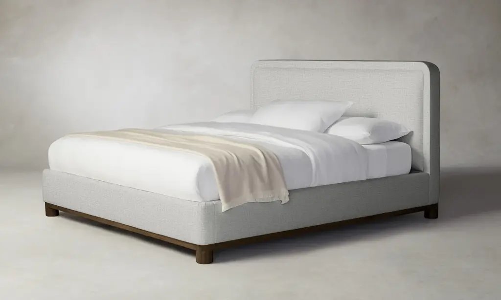 Inspired by the charming and cozy Italian town where it takes its name, the Merano bed frame reimagines the sleigh bed silhouette with its gently angled headboard and footboard. No foundation or box spring required.