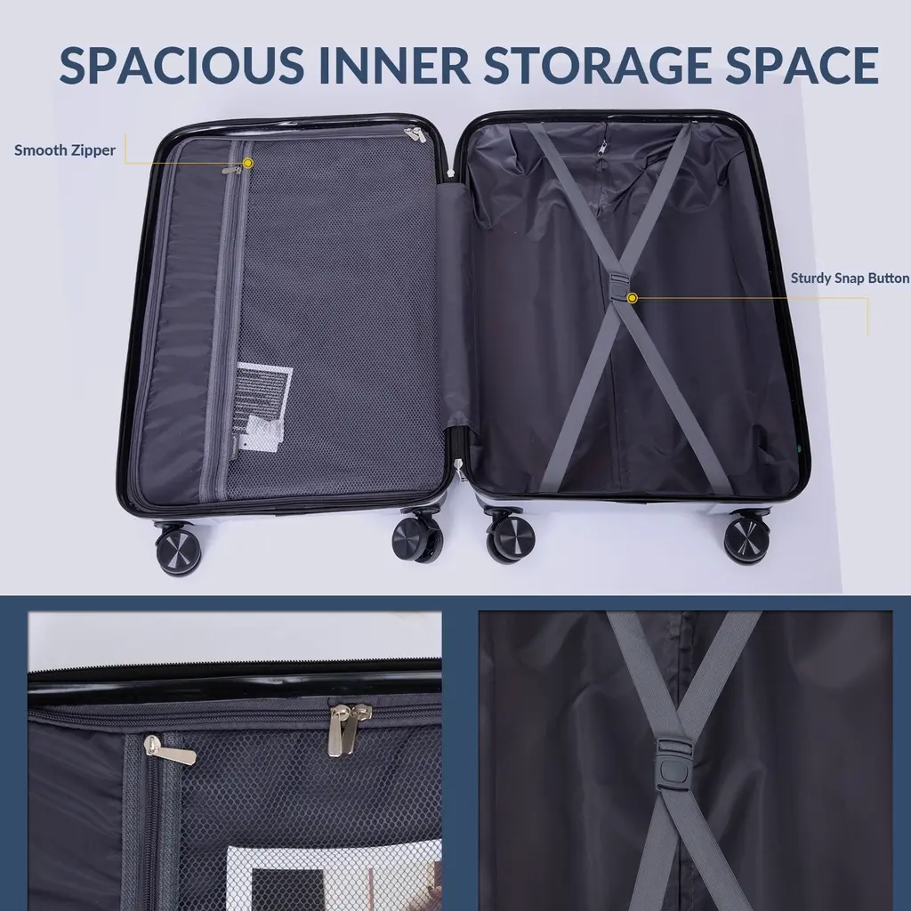 Engineered for durability and style, this 3-piece luggage set is crafted from high-quality polypropylene (PP) material that’s highly impact-resistant, scratch-resistant, and exceptionally lightweight—making it ideal for frequent travelers and long-haul trips. The set includes 20" carry-on, 24" medium, and 28" large check-in suitcases to meet all your travel needs whether used separately or together.Features:Quick Glance Points: