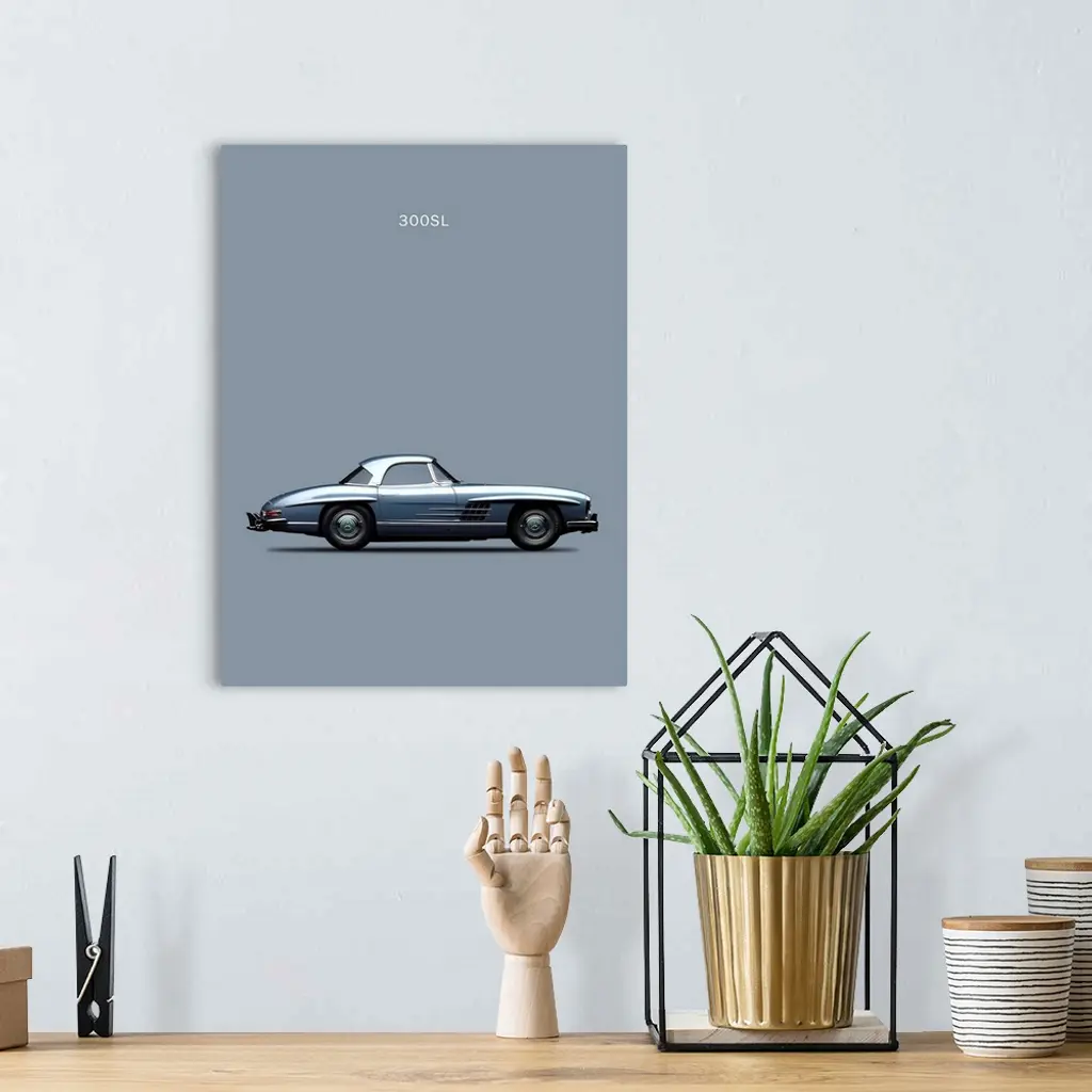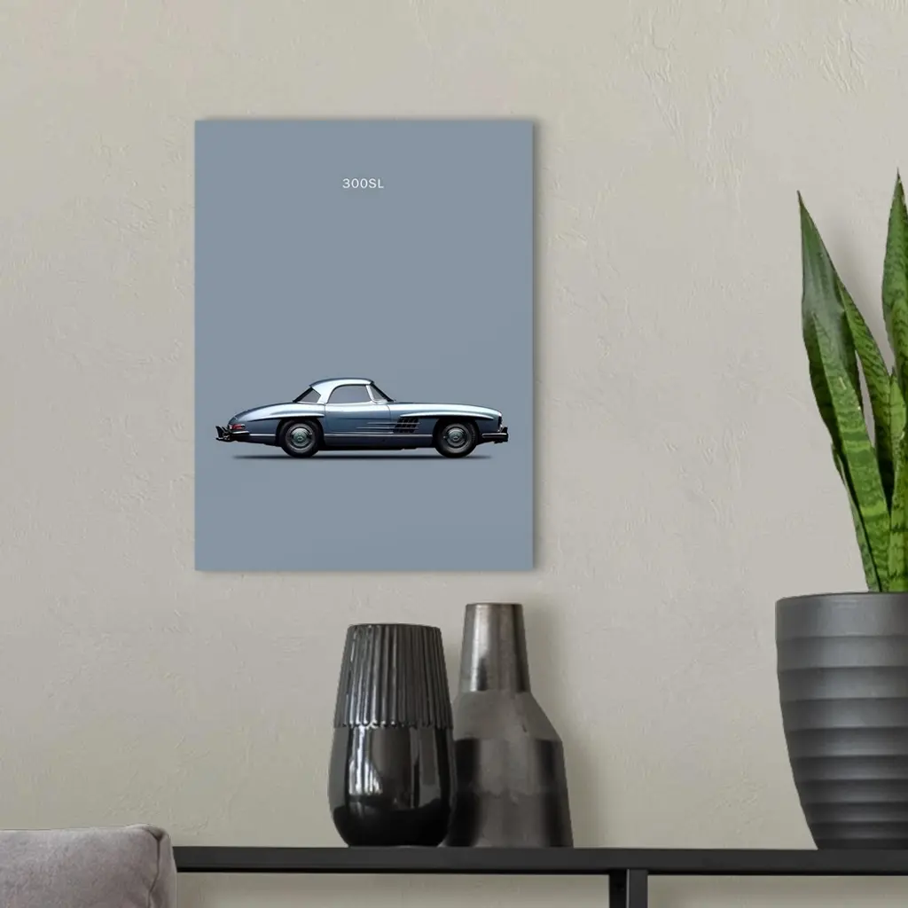 Photograph of a gray Mercedes 300SL 1960 printed on a gray background