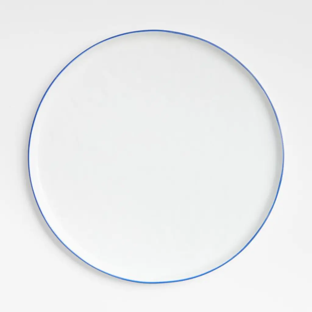Mercer Blue Rim Round Porcelain Dinner Plates, Set Of 8