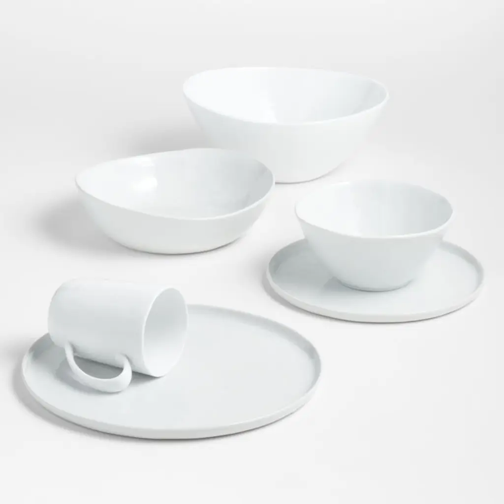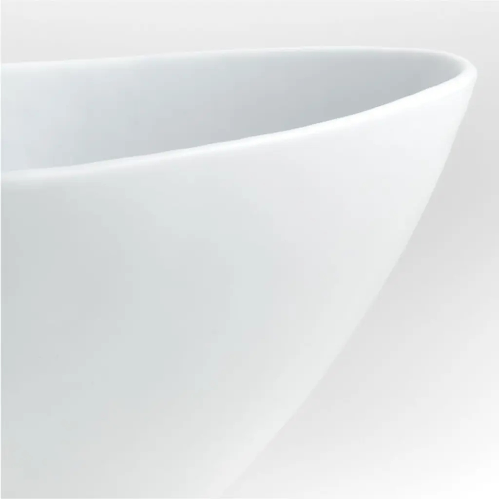 The perfect fusion of refinement and rusticity, our Mercer bowl sizes up for meal-sized servings of smoothie bowls, ramen, chunky fish chowder, grain bowls and more. Organically rounded, the porcelain bowl features a freeform rim and a finely "hammered" surface that ripples with artisanal texture. The bowl goes solo for everyday meals or layers in with other pieces in the Mercer collection for a multi-course gathering. Smooth enough to not harm tables, the unglazed ceramic bottom gives each piece an artisanal look.