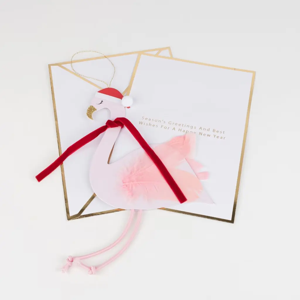 Meri Meri Jolly Flamingo Decoration Christmas Card (Pack Of 1)