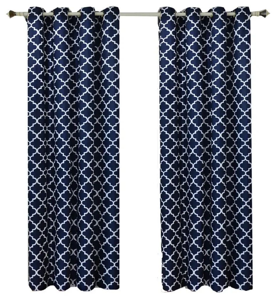 Add magnificence and style to your home with this fascinating Meridian Room Darkening Thermal Insulated Grommet Window Curtains and you''ll discover what it means to have a master piece in curtains. These curtains features a chic style and efficient room darkening abilities Unlike most panels and curtains, these curtains are able to block out light permitting you to relish a good night''s sleep even longer. The panels blend in with all types of decor while polyester fabric is for easy care washing.- Royal Tradition Room darkening grommet curtains - 100-Percent Polyester- Diminishes outdoor light and noise- Thermal-insulated backing- Blocks over 85-percent of light than ordinary curtains- Moroccan tile design- Perfect for day-sleepers- Energy Saving Curtains- Sold in pairs- Machine-washable Easy CareAvailable Sizes Include: - 104" wide x 63" long Pair (52" wide x 63" long each)- 104" wide x 84" long Pair (52" wide x 84" long each)- 104" wide x 96" long Pair (52" wide x 96" long each)- 104" wide x 108" long Pair (52" wide x 108" long each)