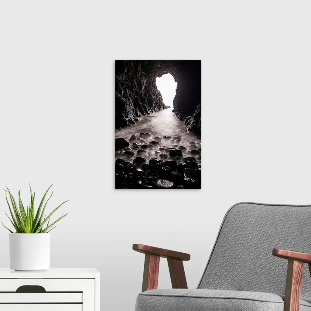 Photograph from inside Mermaid's Cave underneath Dunluce Castle in County Antrim, Ireland.