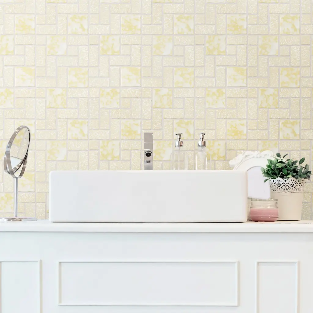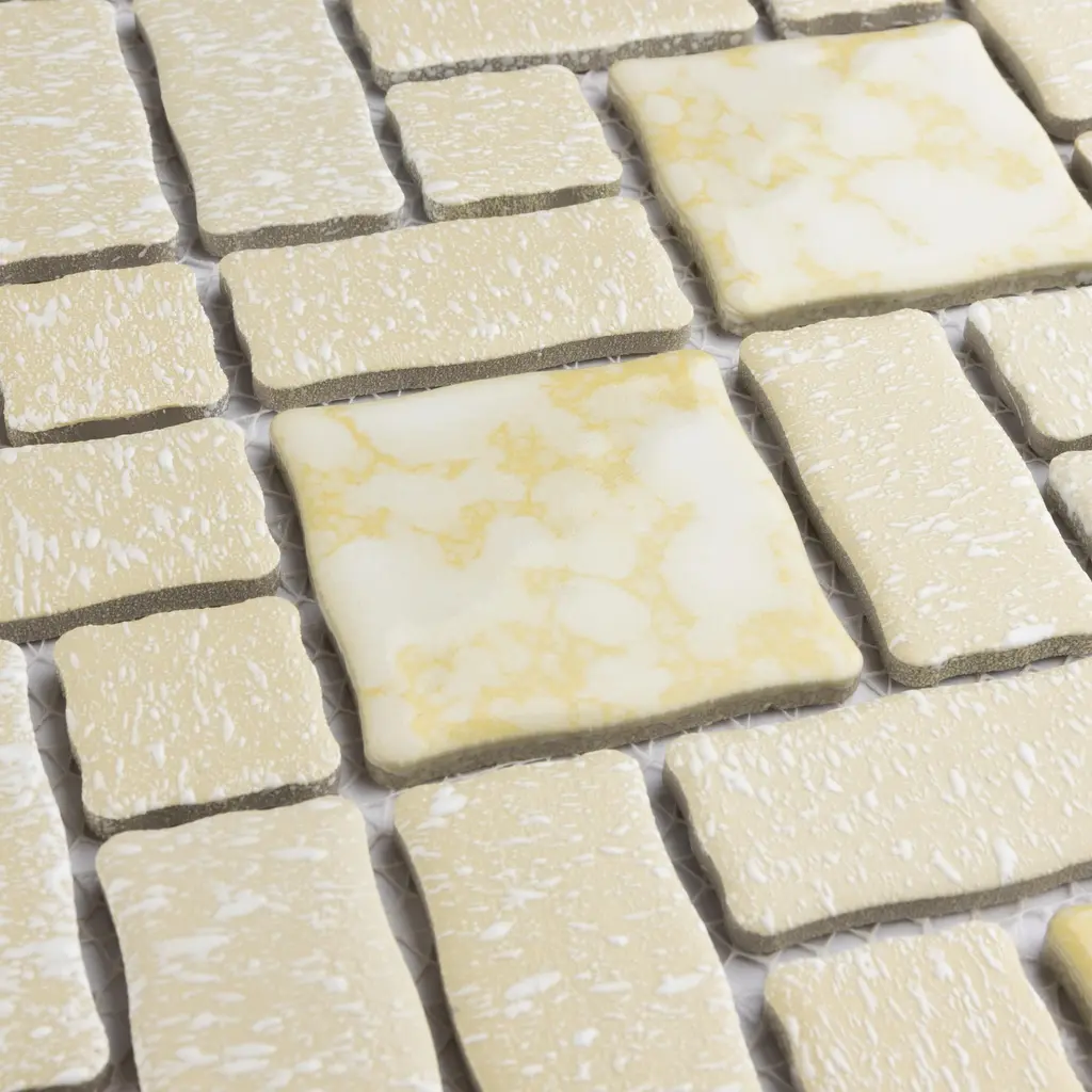 Our Academy Gold Porcelain Mosaic Tile is reminiscent of traditional, multi-texture and multi-color porcelain mosaic floor tile. Featuring a mottled finish and muted color palette, these tiles recreate a classic look with the durability and versatility of a modern tile. Use this tile virtually anywhere, due to its frost resistance, high slip resistance and P.E.I. rating of 4. 10.0 square feet, 10 pieces per case. Case weight is 20 lbs. Grade 1, first-quality porcelain tile for floor and wall use 11.88 in. width x 11.88 in. length x 0.19 in. thick mesh-mounted mosaic Glazed, mixed texture with a mixed finish and slight variation in tone PEI Rating IV has high resistance to abrasion and is suitable for heavy-duty residential and commercial kitchens, hotels, exhibition and sales rooms with some dirt conditions Impervious tiles have a water absorption of less than 0.5% for indoor and outdoor use and are frost resistant This tile has a COF wet rating greater than 0.60 to 0.79 which is considered skid resistant for indoor and outdoor use. This tile is ADA approved for slip resistance. Completely frost resistant for indoor or outdoor applications; use a latex-modified thinset for acceptable bond strength Please note: A sample of this product may be a partial piece cut from the full size tile in order to provide an affordable and convenient way for customers to judge the quality and finish of this item. Samples are not returnable.