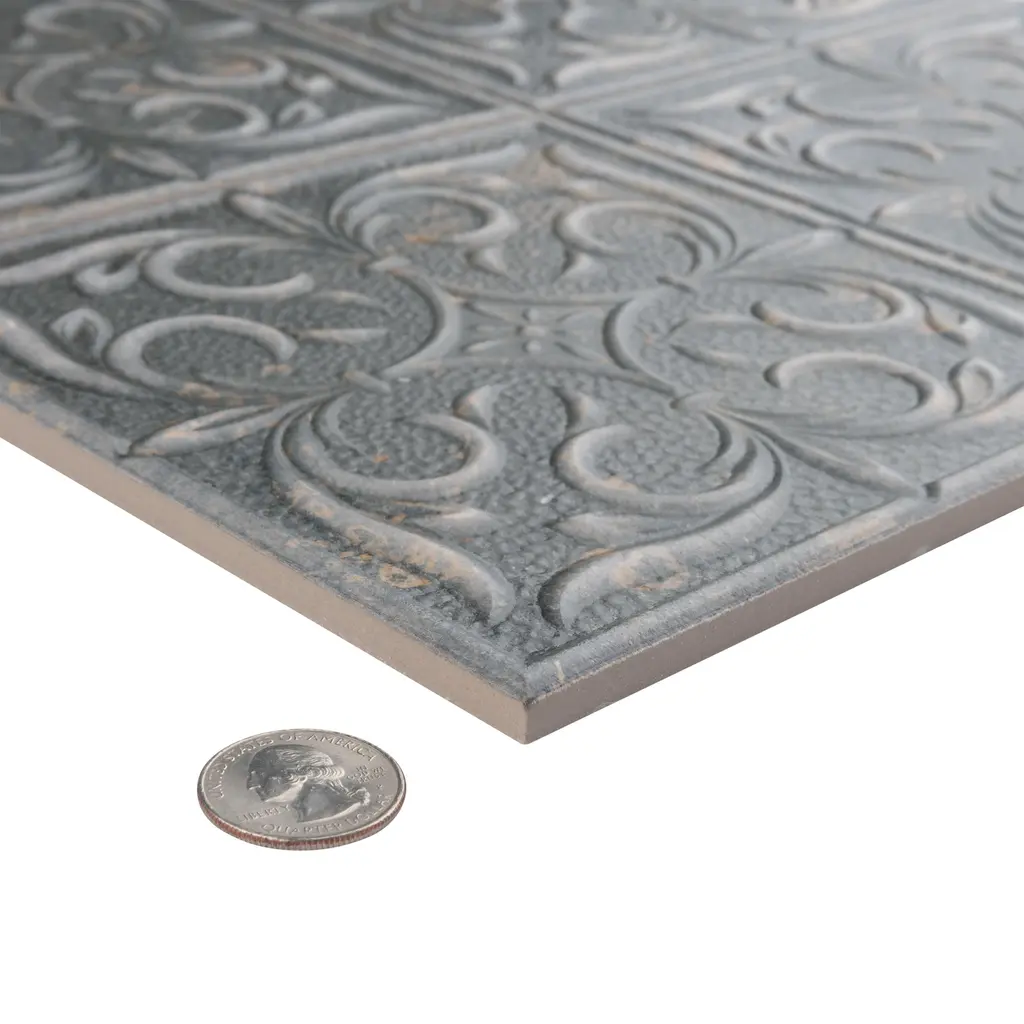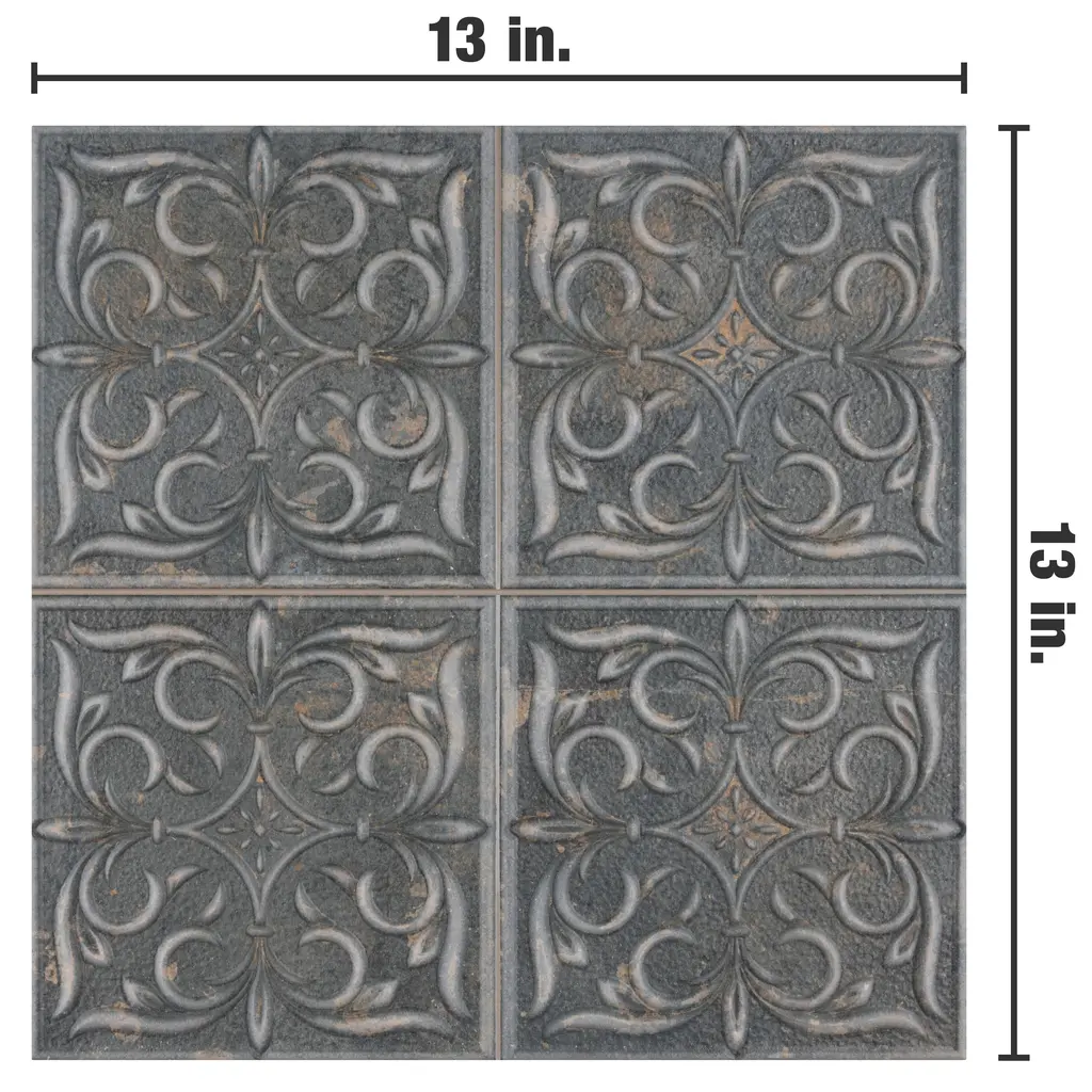 Offering a metal look, our Antigua Lis Black Porcelain Wall Tile features a smooth, mixed finish, providing decorative appeal that adapts to a variety of stylistic contexts. Containing 8 different print variations that are randomly distributed throughout each case, this black square tile offers a one-of-a-kind look. With its impervious, frost-resistant features, this tile is an ideal selection for both indoor and outdoor commercial and residential installations, including kitchens, bathrooms, backsplashes, showers, hallways and fireplace facades. This tile is a perfect choice on its own or paired with other products in the Antigua Collection. Tile is the better choice for your space! 10.62 square feet, 9 pieces per case. Case weight is 40.92 lbs. Grade 1, first-quality porcelain tile for wall use 13 in. width x 13 in. length x 0.38 in. thick Glazed, smooth finish with a mixed finish and slight variation in tone PEI Rating 0 is suitable for wall use only Impervious tiles have a water absorption of less than 0.5% for indoor and outdoor use and are frost resistant DCOF value is not available for this product. Please reference the PEI and MOHS rating for installation. Completely frost resistant for indoor or outdoor applications; use a latex-modified thinset for acceptable bond strength Please note: A sample of this product may be a partial piece cut from the full size tile in order to provide an affordable and convenient way for customers to judge the quality and finish of this item. Samples are not returnable.