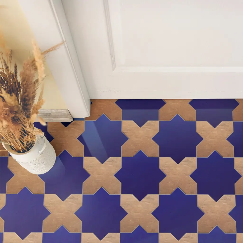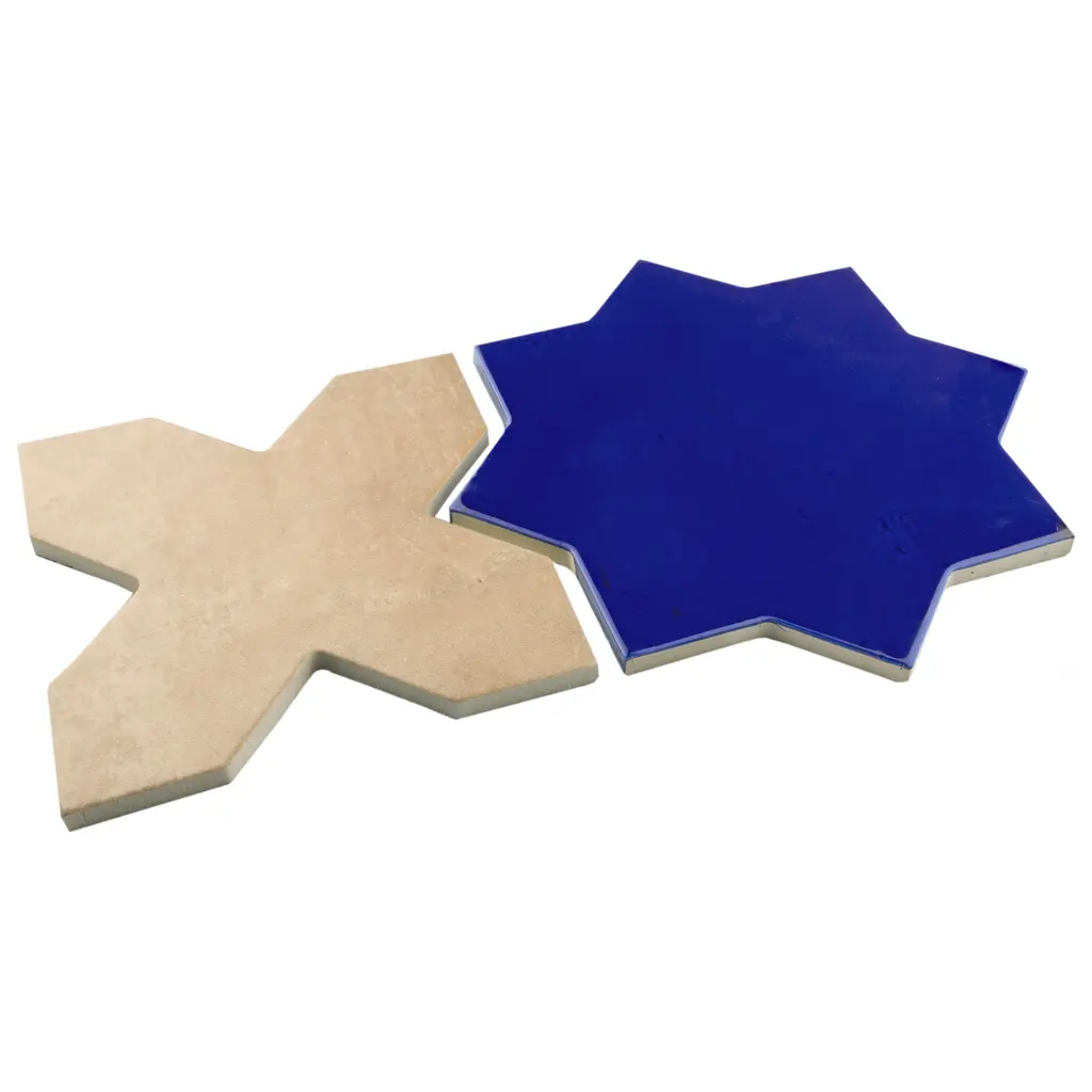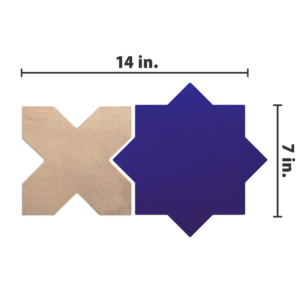 Merola Tile Argile Star Blue With Cotto Cross 7" X 14" Porcelain Floor And Wall Tile - Kit (2 Tiles) - Kit (2 Tiles)
