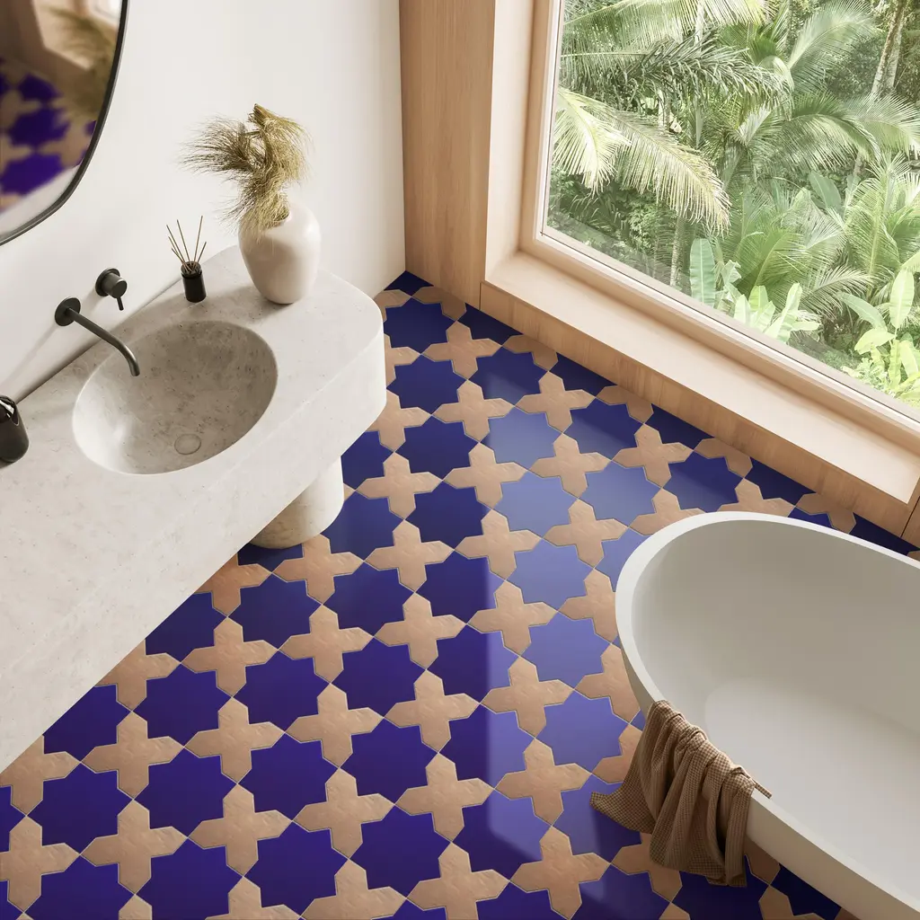 Replicating a terra cotta look, our Argile Porcelain Floor and Wall Tile Kit features tiles with mixed textured finishes, providing decorative appeal that adapts to a variety of stylistic contexts. The different shapes, colors, and finishes in the range make Argile one of Merola's most flexible collections. This kit features (1) 7"x7" star, and (1) 7"x7" cross. With its impervious, frost-resistant features, this tile is an ideal selection for both indoor and outdoor residential installations, including kitchens, living rooms, dining rooms, bathrooms, backsplashes, showers, and hallways. This tile is a perfect choice on its own or paired with other products in the Argile Collection. Tile is the better choice for your space! Note: this kit may ship in multiple boxes depending on quantity ordered. 0.72 square feet, 2 pieces per kit. Each kit is shipped in 1 carton. Grade 1, first-quality porcelain tile for floor and wall use Installed Kit Dimensions; 7.00 in. width x 14.00 in. length x 0.39 in. thick Glazed, mixed texture with a mixed finish and slight variation in tone PEI Rating III is suitable for medium-duty residential floors including kitchens, halls, corridors, balconies, terraces and areas used more often with normal footwear and small amounts of dirt Impervious tiles have a water absorption of less than 0.5% for indoor and outdoor use and are frost resistant This tile is not ADA approved for slip resistance with a DCOF value less than 0.42. Completely frost resistant for indoor or outdoor applications; use a latex-modified thinset for acceptable bond strength Please note: Samples are not returnable