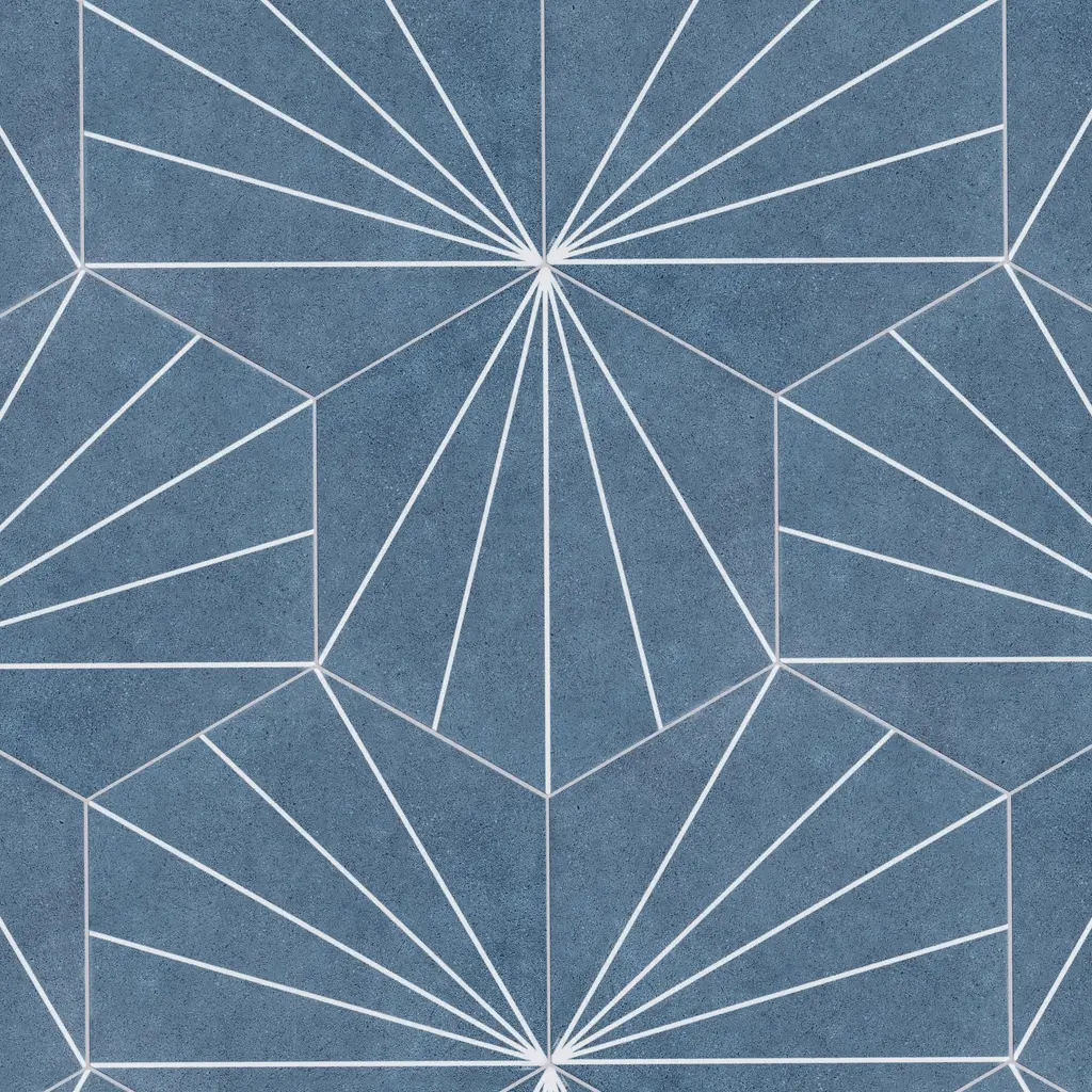 Modeling a geometric look, our Aster Hex Azul Porcelain Floor and Wall Tile features a smooth, satin finish, providing decorative appeal that adapts to a variety of stylistic contexts. With its impervious, frost-resistant features, this blue hexagon tile is an ideal selection for a variety of spaces including indoor and outdoor residential installations, kitchens, bathrooms, backsplashes, showers, hallways, pools and fireplace facades. This tile is a perfect choice on its own or with other products in the Merola Tile, Aster Collection. To ensure optimal results, please consult with your installer and review the product specifications to confirm that this tile meets the specific needs of your project.