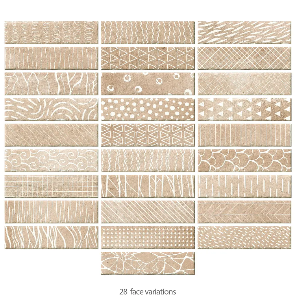 Replicating a terra cotta look, our Atlas Brick Essence Cotto Porcelain Floor and Wall Tile features a mixed textured finish, providing decorative appeal that adapts to a variety of stylistic contexts. The Atlas Porcelain Tile Collection artfully combines the rugged elegance of natural cement-look textures with sleek, modern minimalistic shapes. Whether used indepently or with Gaudi and Garden Collections, it offers a truly customizable design experience. Containing 28 different print variations that are randomly distributed throughout each case, this brown rectangle tile offers a one-of-a-kind look. With its impervious, frost-resistant features, this tile is an ideal selection for both indoor and outdoor commercial and residential installations, including kitchens, bathrooms, backsplashes, showers, hallways, entryways, patios and fireplace facades. This tile is a perfect choice on its own or paired with other products in the Atlas Collection. Tile is the better choice for your space! 5.78 square feet, 34 pieces per case. Case weight is 25.53 lbs. Grade 1, first-quality porcelain tile for floor and wall use 2.38 in. width x 9.75 in. length x 0.39 in. thick Glazed, mixed texture with a mixed finish and moderate variation in tone PEI Rating IV has high resistance to abrasion and is suitable for heavy-duty residential and commercial kitchens, hotels, exhibition and sales rooms with some dirt conditions Impervious tiles have a water absorption of less than 0.5% for indoor and outdoor use and are frost resistant This tile is ADA approved for slip resistance with a DCOF value of 0.42 or higher. Completely frost resistant for indoor or outdoor applications; use a latex-modified thinset for acceptable bond strength Please note: A sample of this product may be a partial piece cut from the full size tile in order to provide an affordable and convenient way for customers to judge the quality and finish of this item. Samples are not returnable.
