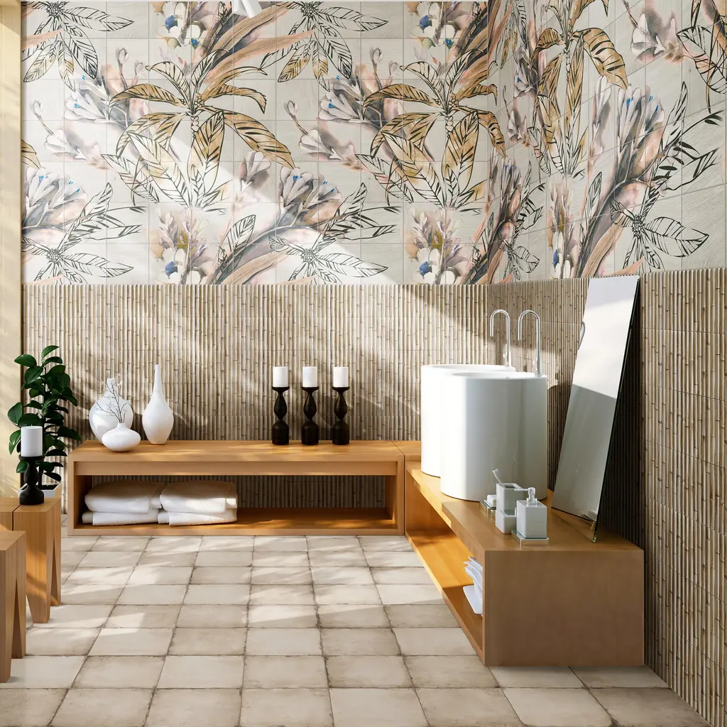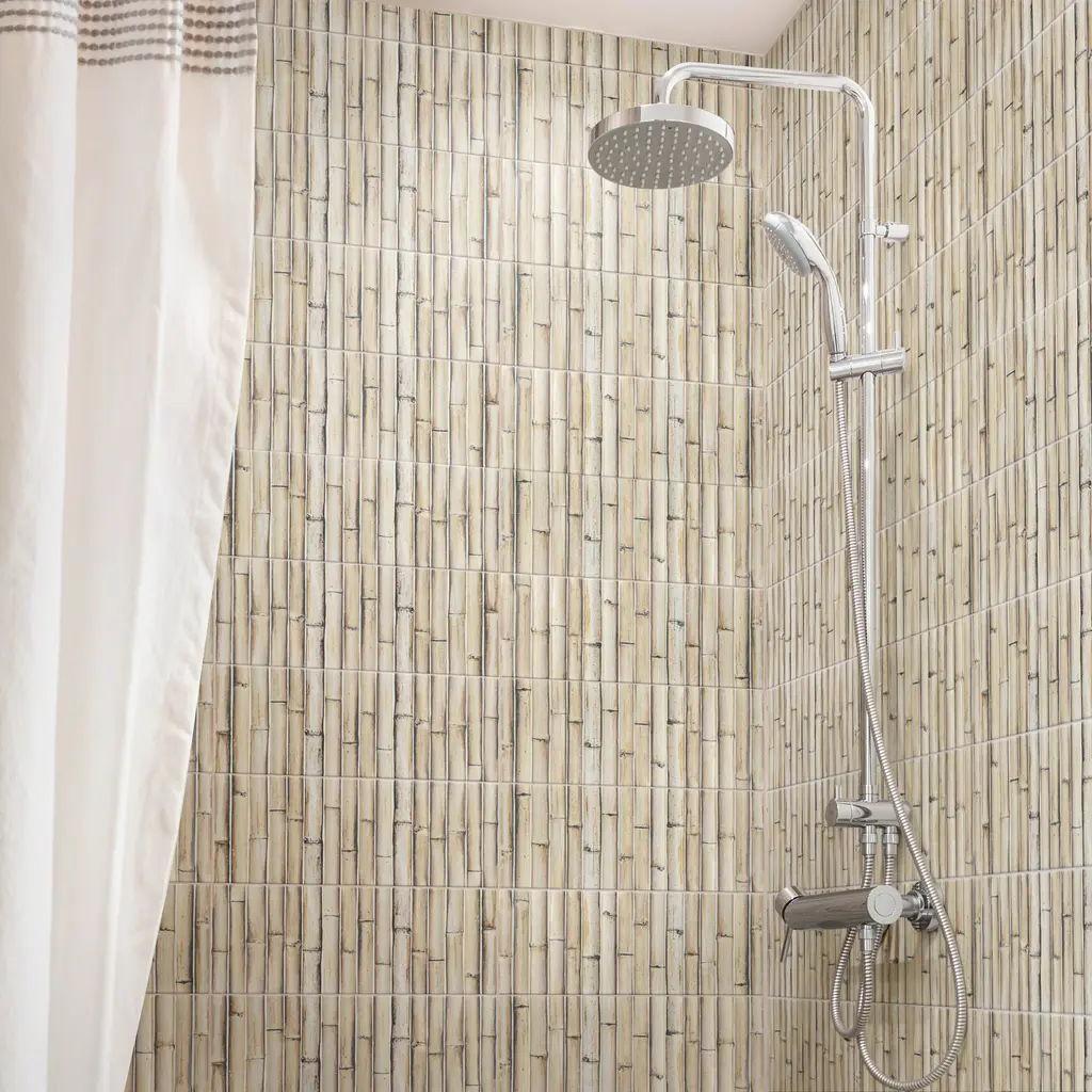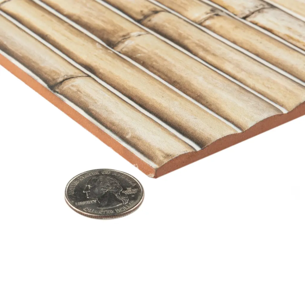 Replicating a wood look, our Bamboo Haven Sandy White Fluted Ceramic Wall Tile features a smooth, matte finish, providing decorative appeal that adapts to a variety of stylistic contexts. With its non-vitreous features, this beige rectangle tile is an ideal selection for indoor commercial and residential installations, including kitchens, bathrooms, backsplashes, showers, hallways and fireplace facades. This tile is a perfect choice on its own or paired with other products in the Bamboo Collection. Tile is the better choice for your space! 9.8 square feet, 20 pieces per case. Case weight is 28.33 lbs. Grade 1, first-quality Fluted Ceramic tile for wall use 5.88 in. width x 11.88 in. length x 0.33 in. thick Glazed, smooth finish with a low sheen and moderate variation in tone PEI Rating 0 is suitable for wall use only Non-Vitreous tiles have water absorption of more than 7% for indoor use DCOF value is not available for this product. Please reference the PEI and MOHS rating for installation. Not frost resistant Please note: A sample of this product may be a partial piece cut from the full size tile in order to provide an affordable and convenient way for customers to judge the quality and finish of this item. Samples are not returnable.
