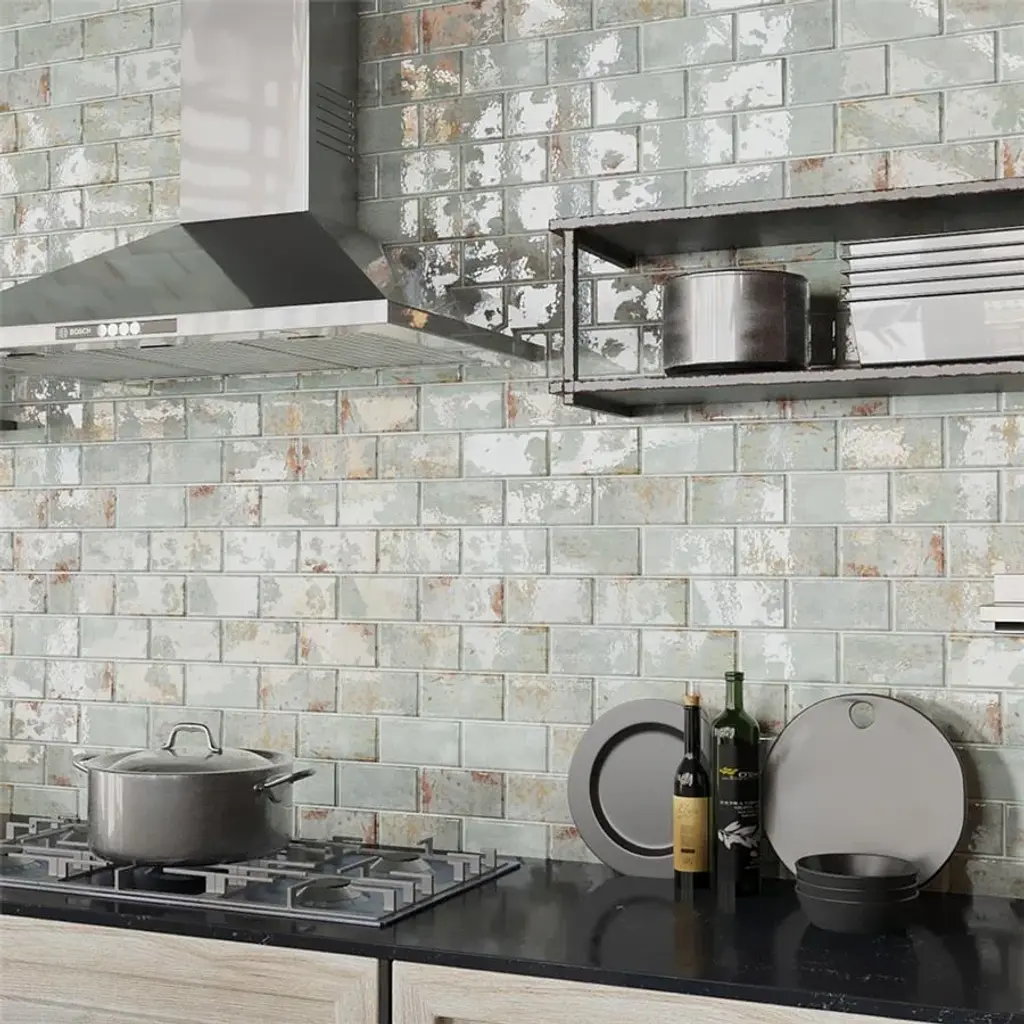 Blending modern and vintage design elements, our Biarritz Green Ceramic Subway Wall Tile offers a casual urban appeal. Featuring a worn appearance, this tile is a subtle statement piece created by distressed patterns in a seafoam green color tone. With slight undulation and a mixed finish, this subway tile offers a handmade appearance through subtle imperfections that make it look like each tile was handcrafted. Available in eighteen print variations that are randomly scattered throughout each case, the variation throughout each tile mimics an authentic aged appearance. Its glazed feature makes this tile an ideal choice for indoor wall installations including, kitchen backsplashes bathroom showers, and fireplace facades. This tile is a perfect choice on its own or paired with other products in the Biarritz Collection. Tile is the better choice for your space. This tile is made from natural ingredients, making it a healthy choice as it is free from allergens, VOCs, formaldehyde and PVC. 5.72 square feet, 44 pieces per case. Case weight is 14.55 lbs. Grade 1, first-quality ceramic tile for wall use 3 in. width x 6 in. length x 0.32 in. thick Glazed, slightly textured finish with a mixed finish and moderate variation in tone PEI Rating 0 is suitable for wall use only Non-Vitreous tiles have water absorption of more than 7% for indoor use DCOF value is not available for this product. Please reference the PEI and MOHS rating for installation. Not frost resistant Please note: A sample of this product may be a partial piece cut from the full size tile in order to provide an affordable and convenient way for customers to judge the quality and finish of this item. Samples are not returnable.