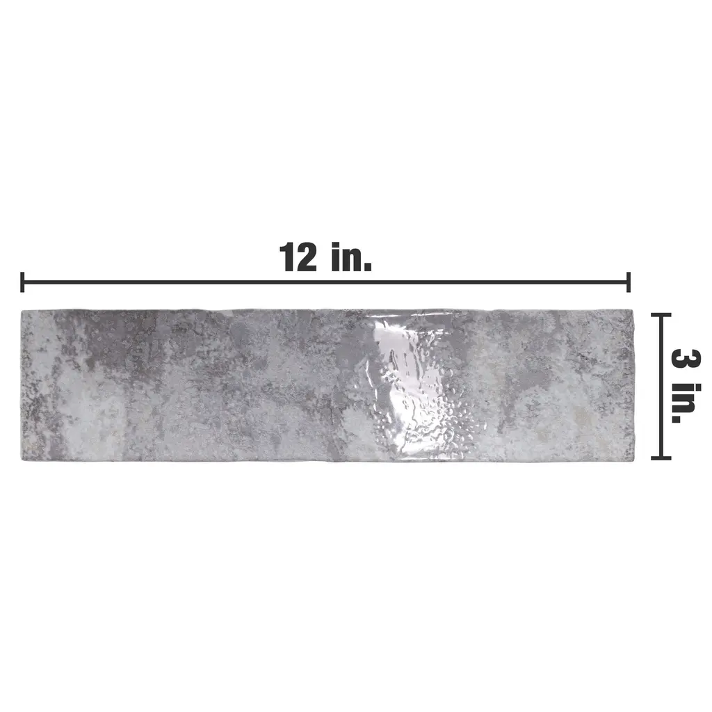 Merola Tile Biarritz Grey 3" X 12" Ceramic Wall Tile - Case (22 Tiles)