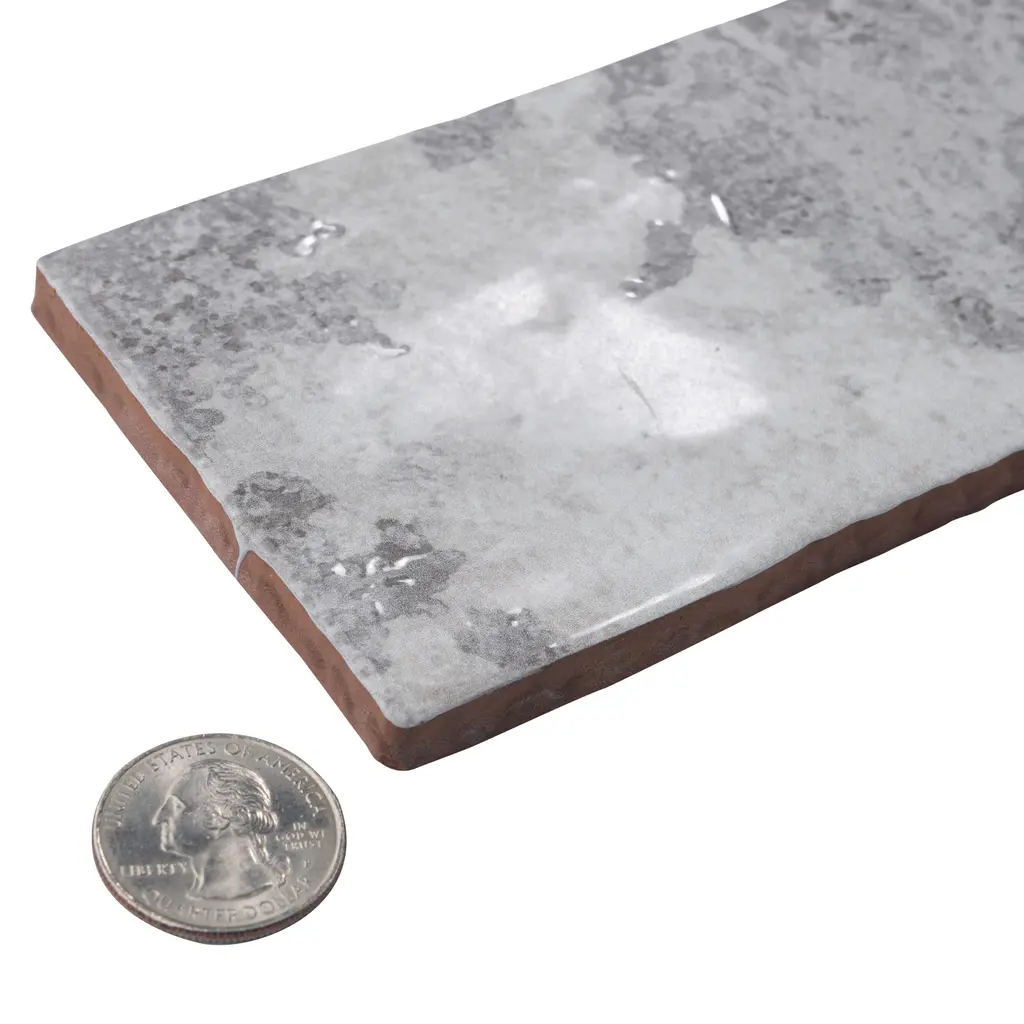 Blending modern and vintage design elements, our Biarritz Grey Ceramic Subway Wall Tile offers a casual urban appeal. Featuring a worn appearance, this tile is a subtle statement piece created by distressed patterns in a light grey color tone. With slight undulation and a mixed finish, this subway tile offers a handmade appearance through subtle imperfections that make it look like each tile was handcrafted. Available in eighteen print variations that are randomly scattered throughout each case, the variation throughout each tile mimics an authentic aged appearance. Its glazed feature makes this tile an ideal choice for indoor wall installations including, kitchen backsplashes bathroom showers, and fireplace facades. This tile is a perfect choice on its own or paired with other products in the Biarritz Collection. Tile is the better choice for your space. This tile is made from natural ingredients, making it a healthy choice as it is free from allergens, VOCs, formaldehyde, and PVC. 5.72 square feet, 22 pieces per case. Case weight is 14.3 lbs. Grade 1, first-quality ceramic tile for wall use 3 in. width x 12 in. length x 0.38 in. thick Glazed, smooth finish with a mixed finish and slight variation in tone PEI Rating 0 is suitable for wall use only Non-Vitreous tiles have water absorption of more than 7% for indoor use DCOF value is not available for this product. Please reference the PEI and MOHS rating for installation. Not frost resistant Please note: A sample of this product may be a partial piece cut from the full size tile in order to provide an affordable and convenient way for customers to judge the quality and finish of this item. Samples are not returnable.