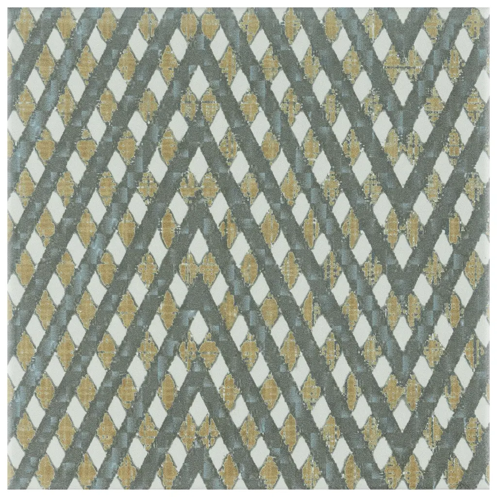 Mesmerizing geometric patterns and unique colors blend together to create our Boheme Grid Ceramic Floor and Wall Tile. This ceramic tile transforms any space into a work of art through linear patterns in varying shades of khaki and slate blue set on an off-white base glaze. Composed of rich detail and a smooth surface texture, this floor and wall tile features stunningly realistic fabric-look designs for additional visual dimension. Its highly durable and frost-resistant features make this an ideal choice for indoor and outdoor commercial and residential installations including kitchens, bathrooms, entryways, and patios. Tile is the better choice for your space. This tile is made from natural ingredients, making it a healthy choice as it is free from allergens, VOCs, formaldehyde and PVC. 10.75 square feet, 25 pieces per case. Case weight is 26.25 lbs. Grade 1, first-quality ceramic tile for floor and wall use 7.75 in. width x 7.75 in. length x 0.25 in. thick Glazed, smooth finish with a medium sheen and slight variation in tone PEI Rating IV has high resistance to abrasion and is suitable for heavy-duty residential and commercial kitchens, hotels, exhibition and sales rooms with some dirt conditions Vitreous tiles have water absorption of more than 0.5% but less than 3% for indoor use and some outdoor applications and are frost resistant This tile is ADA approved for slip resistance with a DCOF value of 0.42 or higher. Completely frost resistant for indoor or outdoor applications; use a latex-modified thinset for acceptable bond strength Please note: A sample of this product may be a partial piece cut from the full size tile in order to provide an affordable and convenient way for customers to judge the quality and finish of this item. Samples are not returnable.